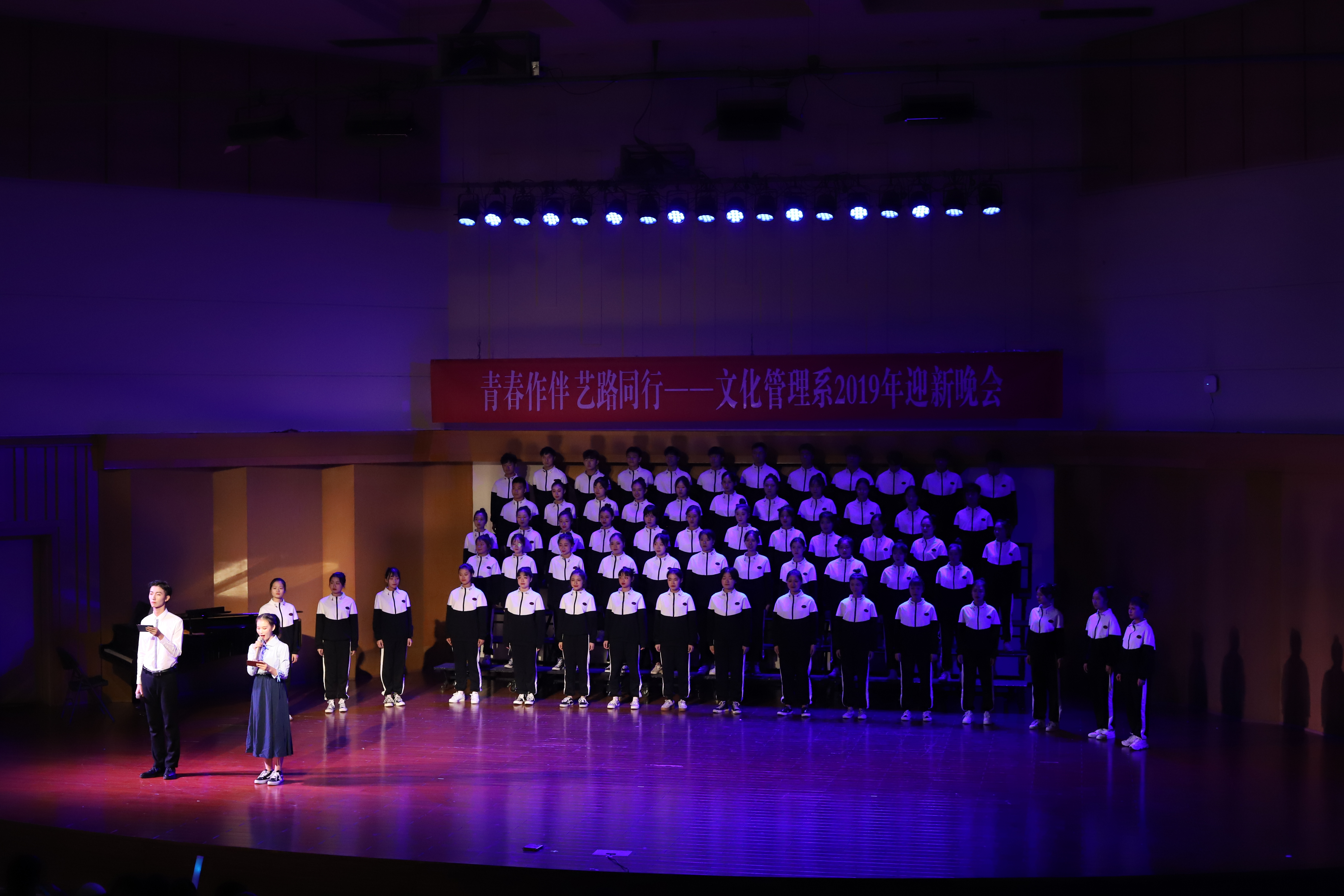 2019年11月1日晚,“青春作伴 艺路同行”文化管理系2019年迎新晚会在音乐厅举办。
