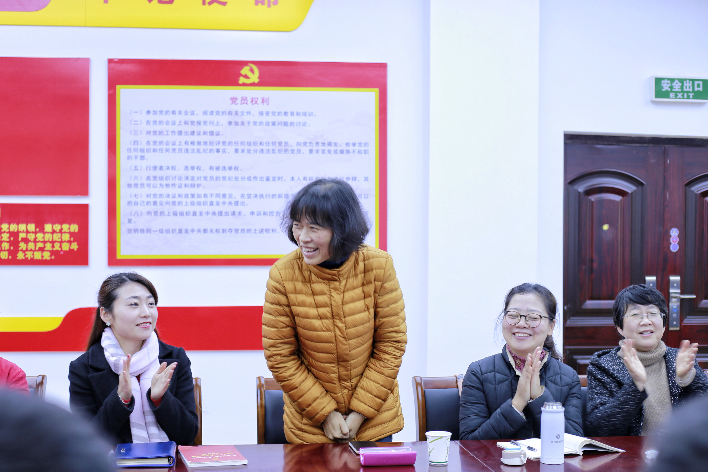 与会教师们纷纷祝愿胡海影老师身体健康,退休生活美满幸福。会议最后,沈军甫代表学校向胡海影老师颁发光荣退休荣誉证书并合影留念。