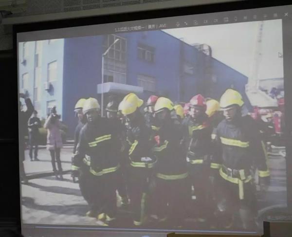 章一立以滨江高教园区周边真实火灾视频案例开场,通过现场危险状况的描述,当事人的恐惧心理切入消防安全知识主题,以惨痛的火灾事故引起同学们对消防安全的重视。他通过一个个真实的视频案例讲述了火灾蔓延速度之快、浓烟对呼吸道损害之强、火灾时气流对皮肤的伤害之深,还沉痛地回忆了几位消防员战友因火灾而献身的事迹,并对视频中的英雄们敬礼,全场认真肃穆。