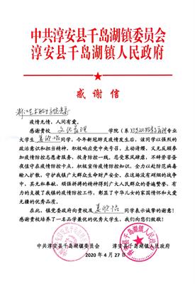 致 姜欣怡 同学的感谢信