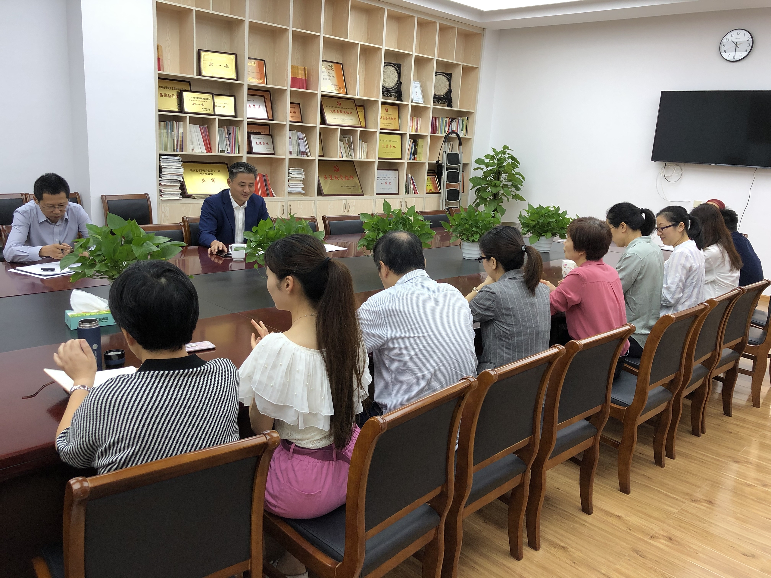 系主任刘秀峰介绍了文化管理系总体情况和专业发展现状,对系部近期开展的工作和新学期主要工作以及今后发展的瓶颈和学前教育筹建中的困难作了汇报。系党总支书记金银琴介绍了文管系在校学生情况、近年来系党建思政育人方面所做出的努力以及当前党建思政工作存在的问题和困难。系副主任齐磊、专业教师陈沁杰等对教学工作、文化民族传统技艺研究所建设等工作进行了汇报。