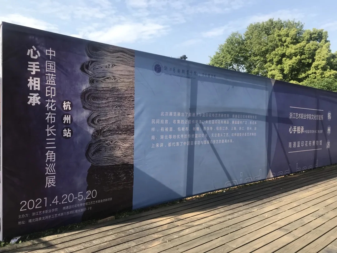 2021年4月20日,由浙江艺术职业学院、南通蓝印花布博物馆主办的江苏艺术基金资助项目《心手相承—中国蓝印花布长三角巡展》的杭州站,在浙江艺术职业学院曙光路黄龙洞手工艺术展厅拉开帷幕,本次展览为期30天。