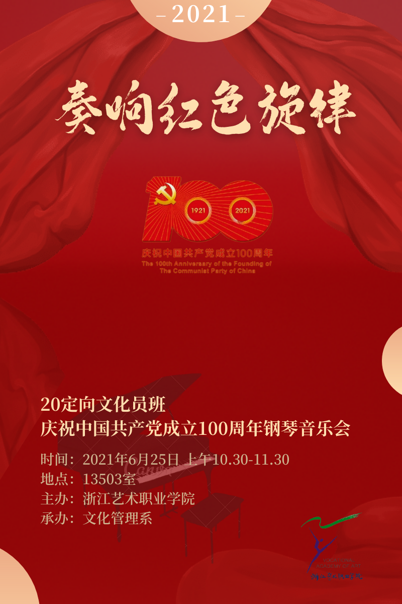 6月25日上午,20定向文化员班为庆祝中国共产党成立100周年钢琴音乐会在13503成功举办。十二首红色钢琴作品体现了同学们一年来的专业学习成果,表达了对建党百年的美好祝福。
