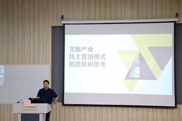 6月2日下午,文化管理系“求真守艺”大学堂第五讲在阶梯一教室成功举办。君澜酒店集团品牌总监鲍诚翔为师生带来有关文旅产业线上营销方面的精彩讲座。