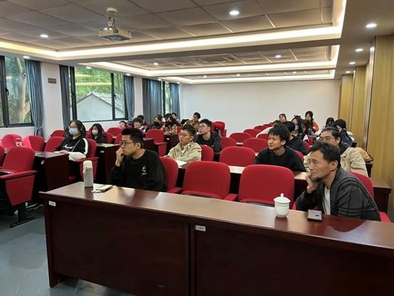 师生们观展结束后,邵文礼开展关于“婺州窑工艺特征”的专题讲座。他讲述了婺州窑历史、工艺及当代婺州窑传承,婺州窑点褐彩、化妆土、乳浊釉、堆塑等多项工艺,并同师生就陶瓷工艺的传承、发展及就业创业方向展开探讨。