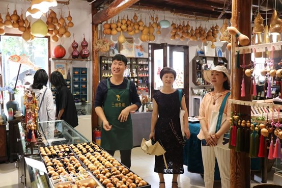 “深澳百匠艺术文化村项目”负责人宋凯带领浙江艺术职业学院师生一行参观了已入驻的各类手艺人工作室,包括木龙香坊、手工葫芦制作工作室“福来”、瑜伽工作室、金缮修复工作室等,现场感受手艺人的匠心独韵。
