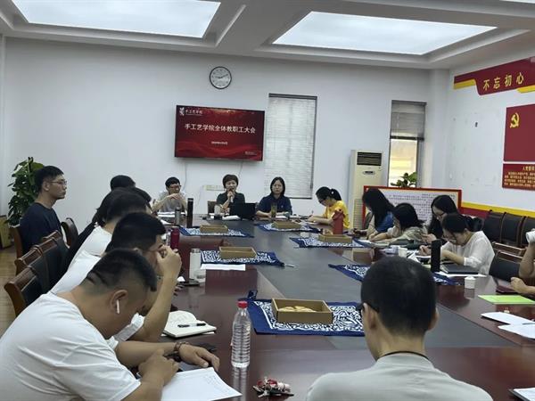 手工艺学院召开全体教职工大会,会议由党总支专职副书记王筱芽主持。