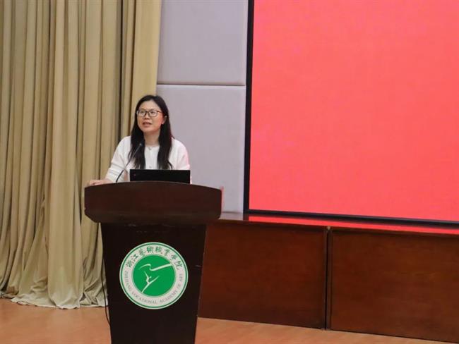 接着,钟黎代表学院欢迎和祝贺各位新生开启人生的新旅程,并以“时代向前,青年向上,传承亚运精神”为主题为新生上了一堂生动的“思政第一课”,鼓励新生力量筑梦青春。同时,她对新生们提出以下四点期望:一是胸怀理想,和祖国同行,让个人理想和民族命运同频共振;二是勤学求知,和奋斗同行,使学业规划和职业目标相辅相成;三是历练自我,和健康同行,个人成长和身心健康缺一不可;四是包容团结,与互助同行,自我意识和集体意识达成共识。