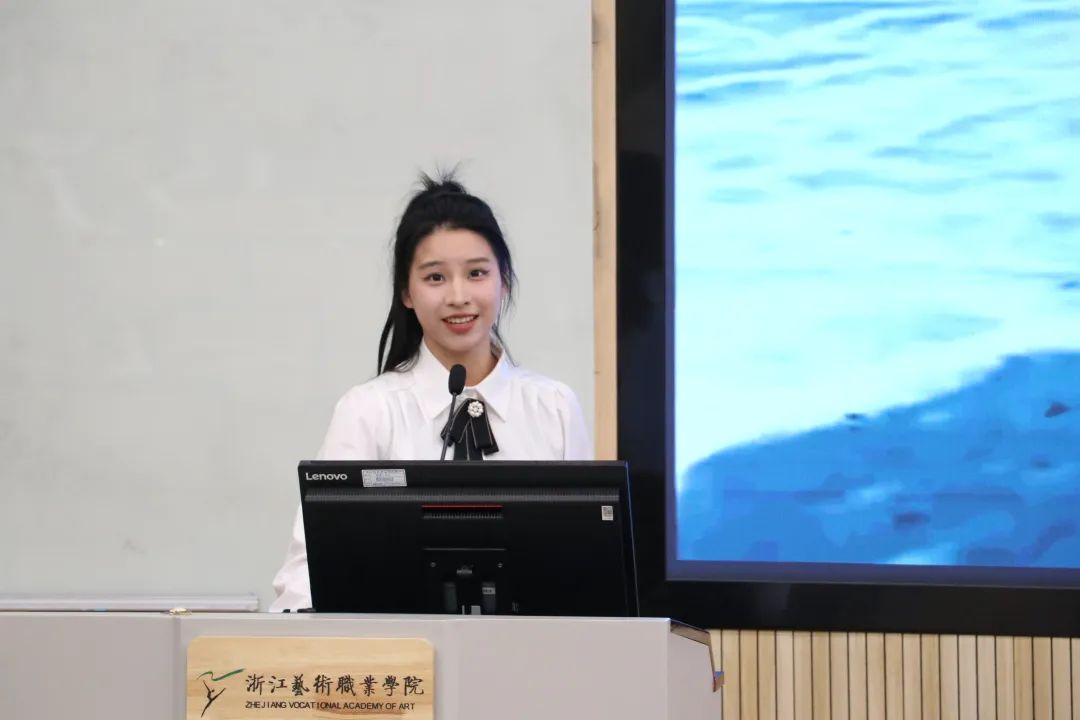 手工艺学院22文创张金雨满怀对家乡萧山的深情,从“共富”“生态”“交通”“媒体”四个角度讲述了“八八战略”成为萧山蝶变明灯的故事。22展示童可裕以苏东坡一句“不可居无竹”巧妙引入家乡嵊州的竹编技艺,向师生讲述非遗传承人的故事,坚定了传承非遗技艺的文化自信和文化自觉。还有冯菡、周心杰、宓佳青、刘梦铌等四位手工艺学院师生宣讲员分别以《在亚运 我看见》《牢记谆谆习语,扛起时代大任》《青春赋能,让文物“活”起来》《非遗致美“中国蓝”》为题展开宣讲,讲好非遗故事、亚运故事和时代故事,绽放青春光彩,呼吁手工艺学子传承传统非遗技艺,扛起青年使命担当。