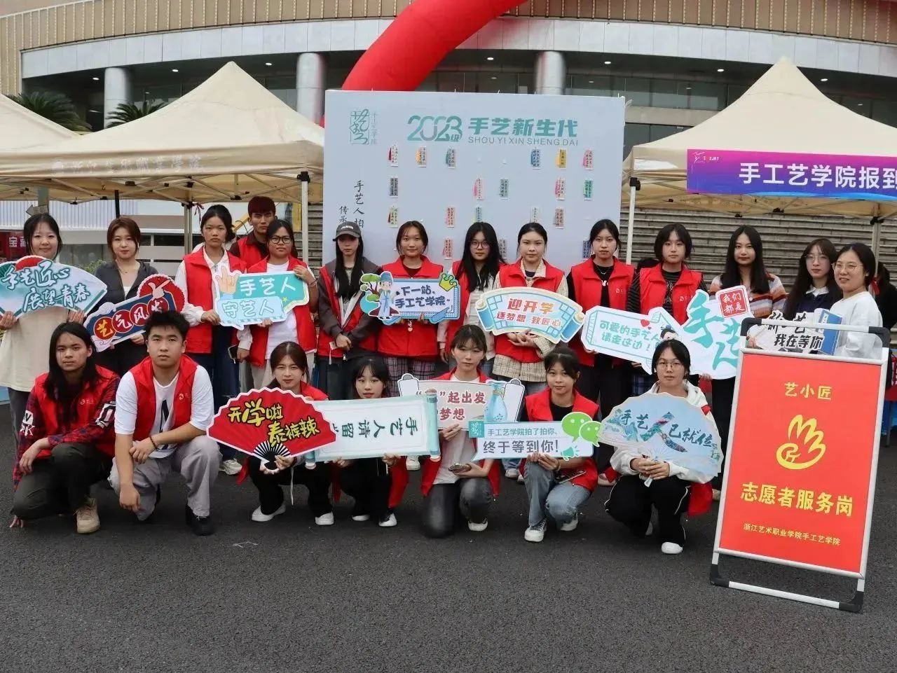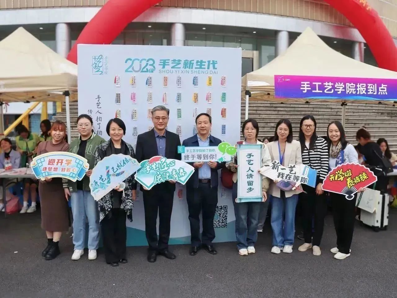 为迎接新生们,学院精心准备了“传承手艺,接力守艺”特色书签墙作为见面礼,并早早地组建了教师党员先锋岗和“艺小匠”志愿服务团队,组成迎新志愿服务队伍,推出系列贴心服务,全程陪伴,努力为来自五湖四海的2023级萌新们提供最暖心的服务。