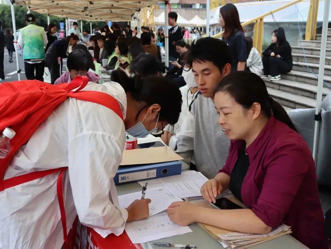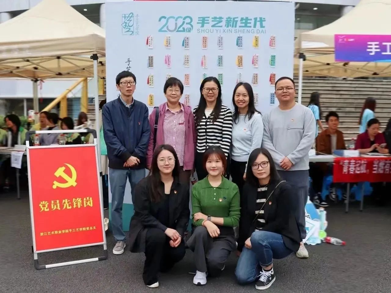 手工艺学院的党员老师们一早到达并时刻关注着报道现场的情况,他们为新生报到保驾护航,耐心引导、解疑答惑,奔走在现场的每一处,用实际行动展示热心服务与温暖祝福。