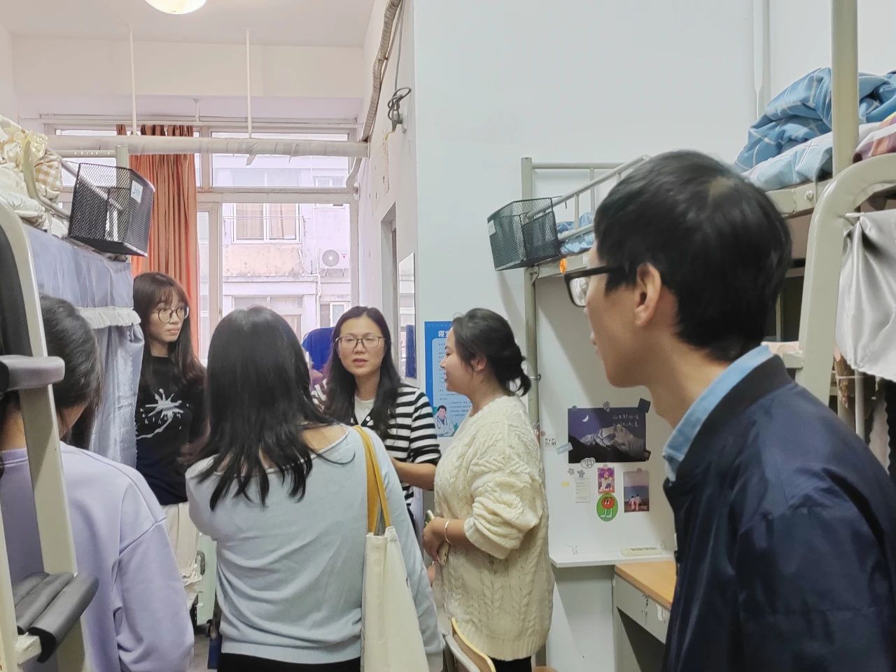 当日傍晚,手工艺学院领导班子开展新学期寝室走访,关心新生寝室的入住情况,并给予新生大学生活和学习的暖心建议,希望新生们能充实且愉快地度过大学生活。