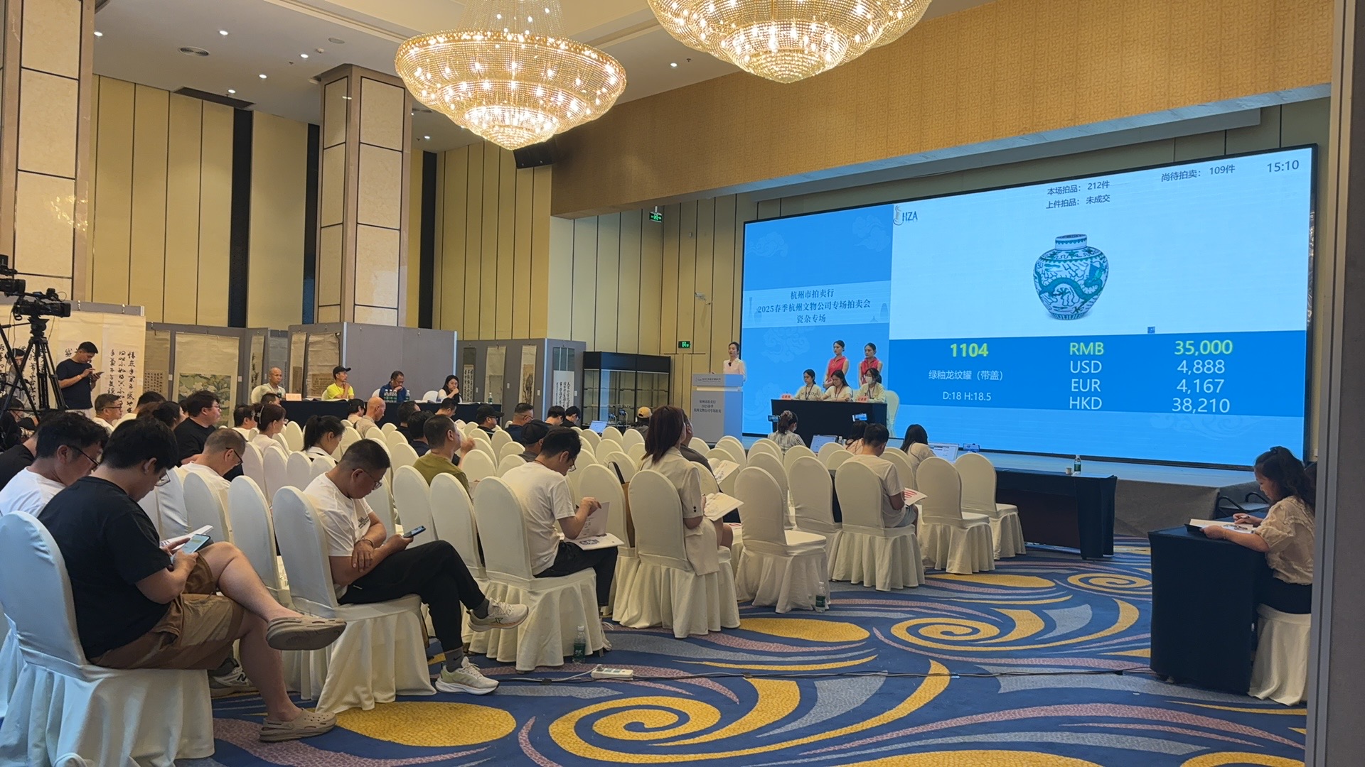 槌声落定,“85万成交,恭喜68号买家!”拍卖现场,激烈的竞价声刚落下,拍卖师手中的锤子果断敲下,宣告一件拍品成功易主。这样充满紧张与期待的场景,正是杭州文物公司艺术品拍卖的精彩瞬间。
