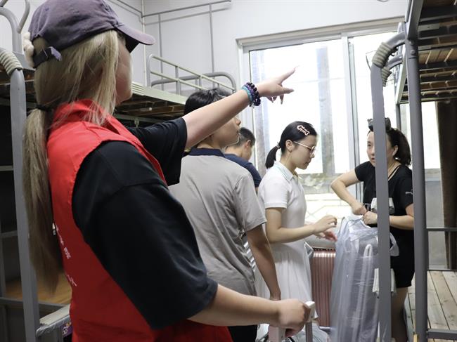 当天,“艺小匠”们主动上前接过新生手中的行李,引导校园路线,助力新生顺利抵达宿舍。新生与家长默契配合,在寝室内有条不紊地整理床铺、收纳物品,迅速将新“小家”布置得整洁温馨。志愿者们的贴心服务赢得了新生及家长的一致好评。