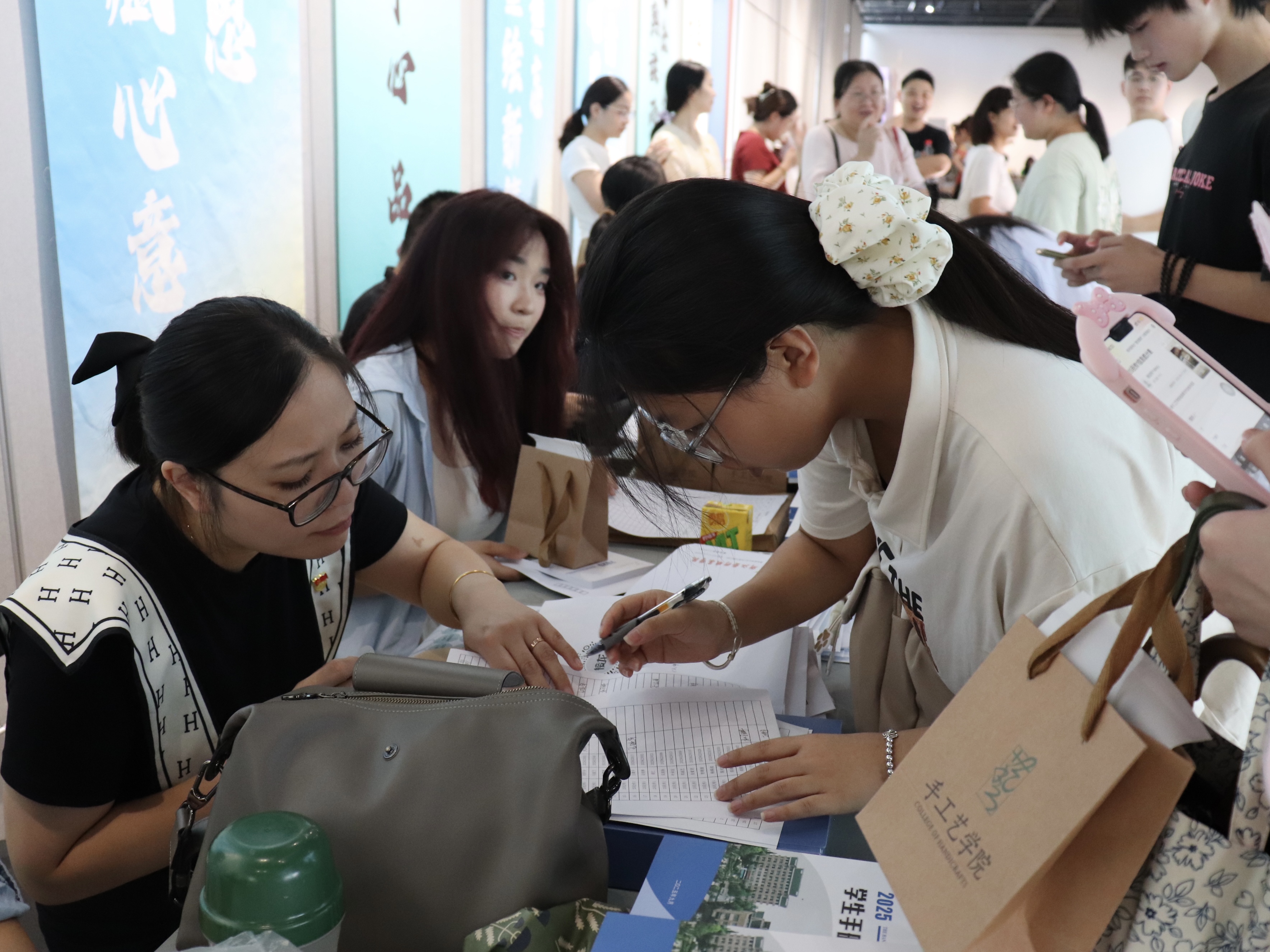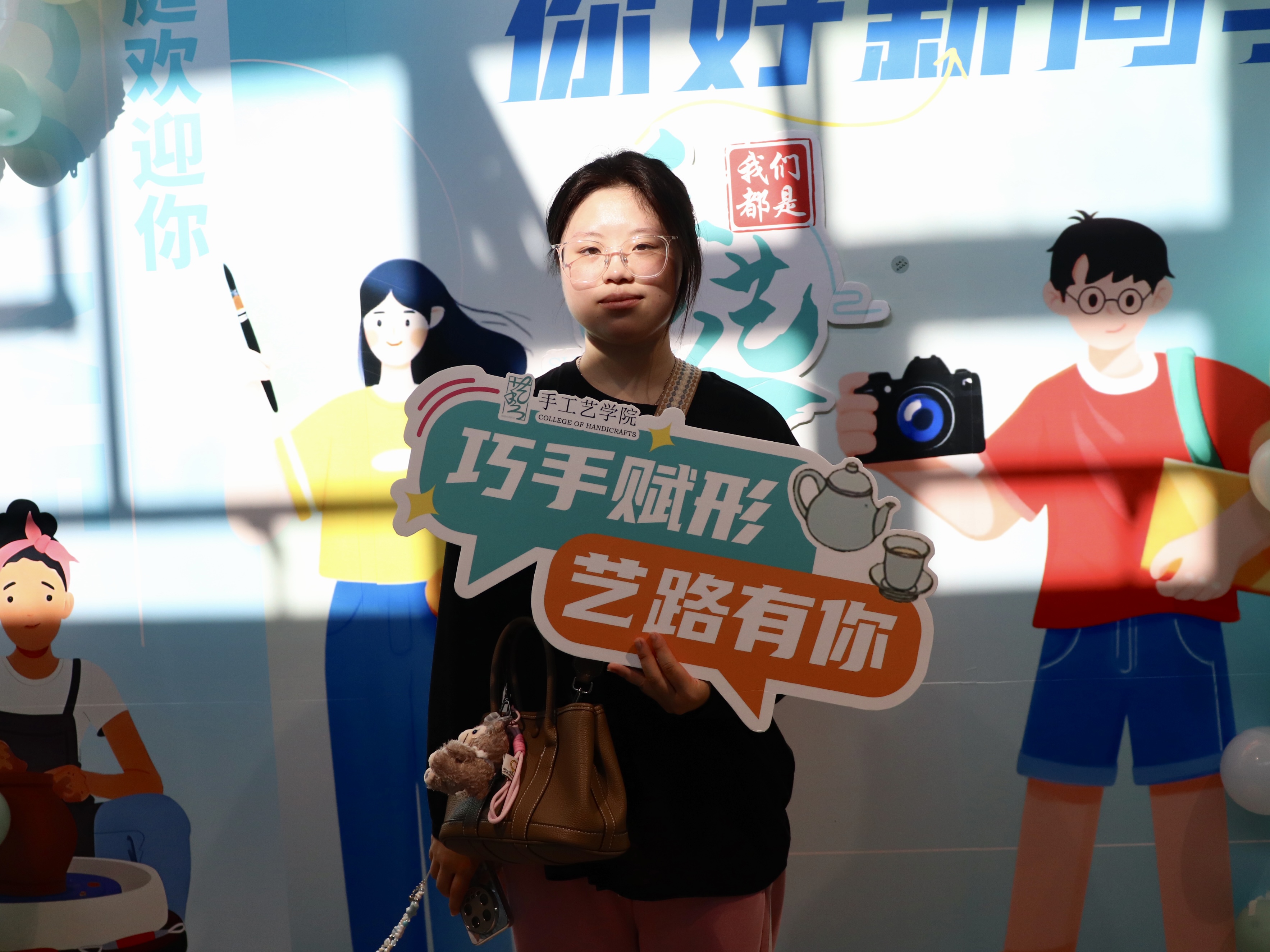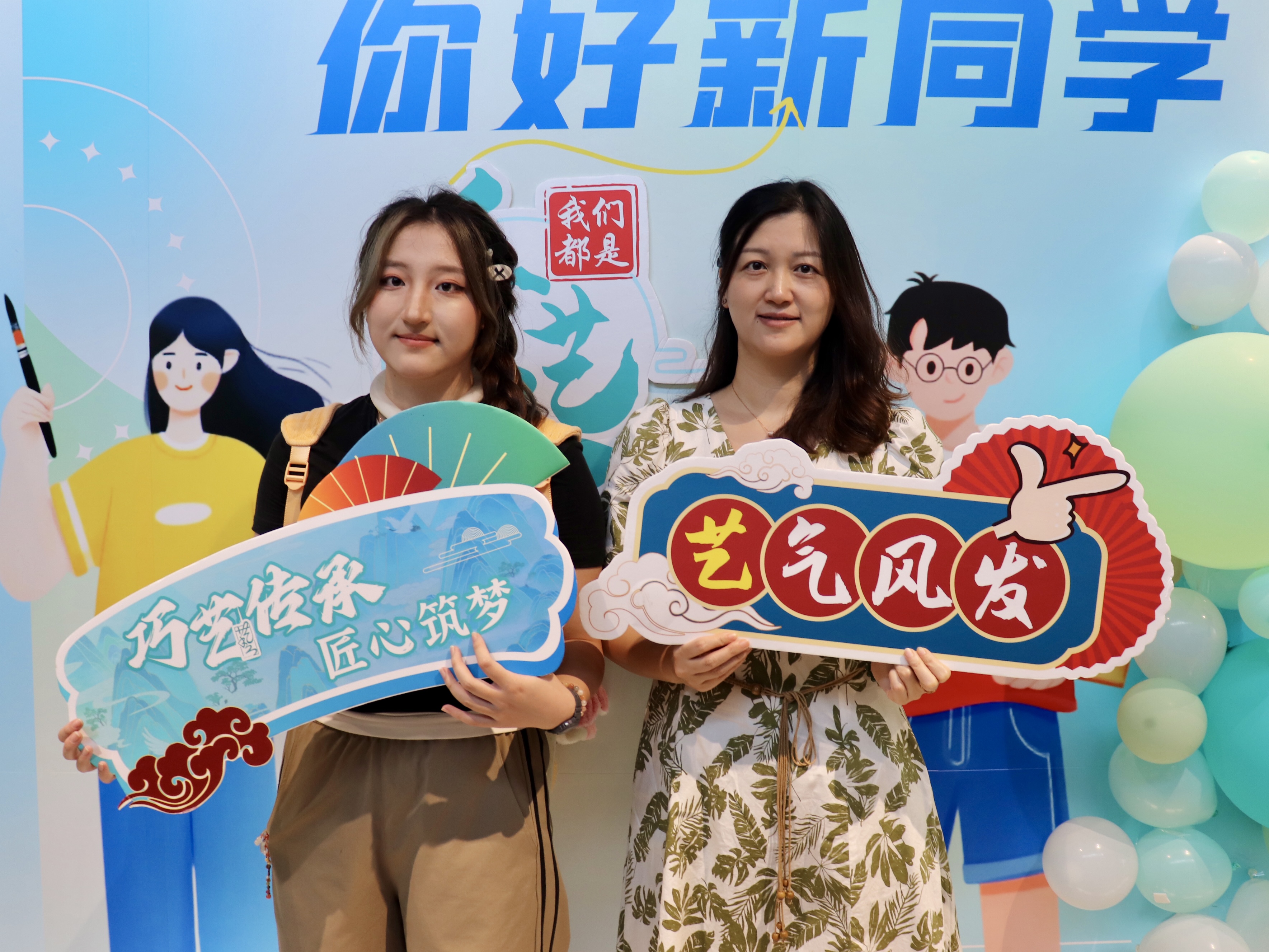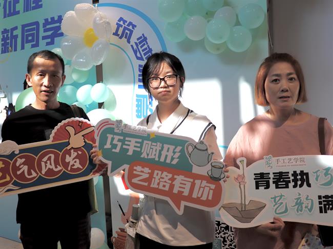 一幅幅书法墙,写下“传承与创新”;一张张喷绘,记录热烈的迎新瞬间;一份份“我是手艺人”的手工定制物料,成为与新生的第一次见面礼。