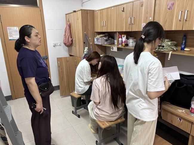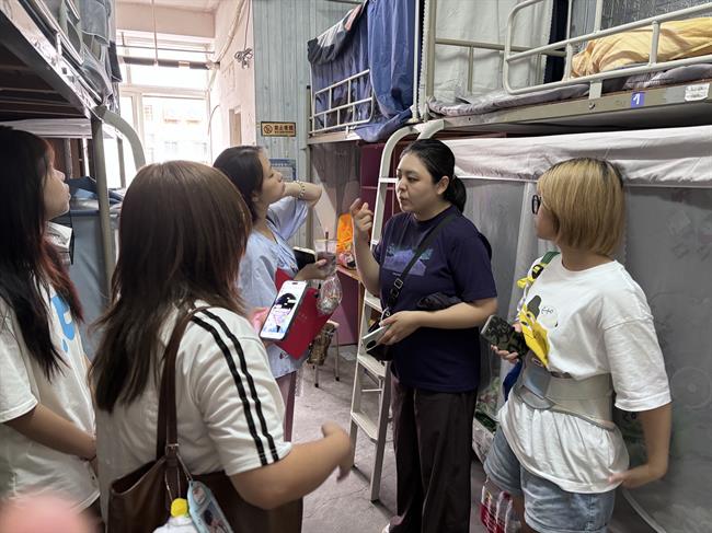 在寝室内,党总支书记钟黎亲切地与同学们交谈,询问家乡地域、兴趣爱好与开学适应情况。她送上真挚祝福,勉励大家勤奋学习、脚踏实地,在逐梦艺术的道路上笃行不怠。