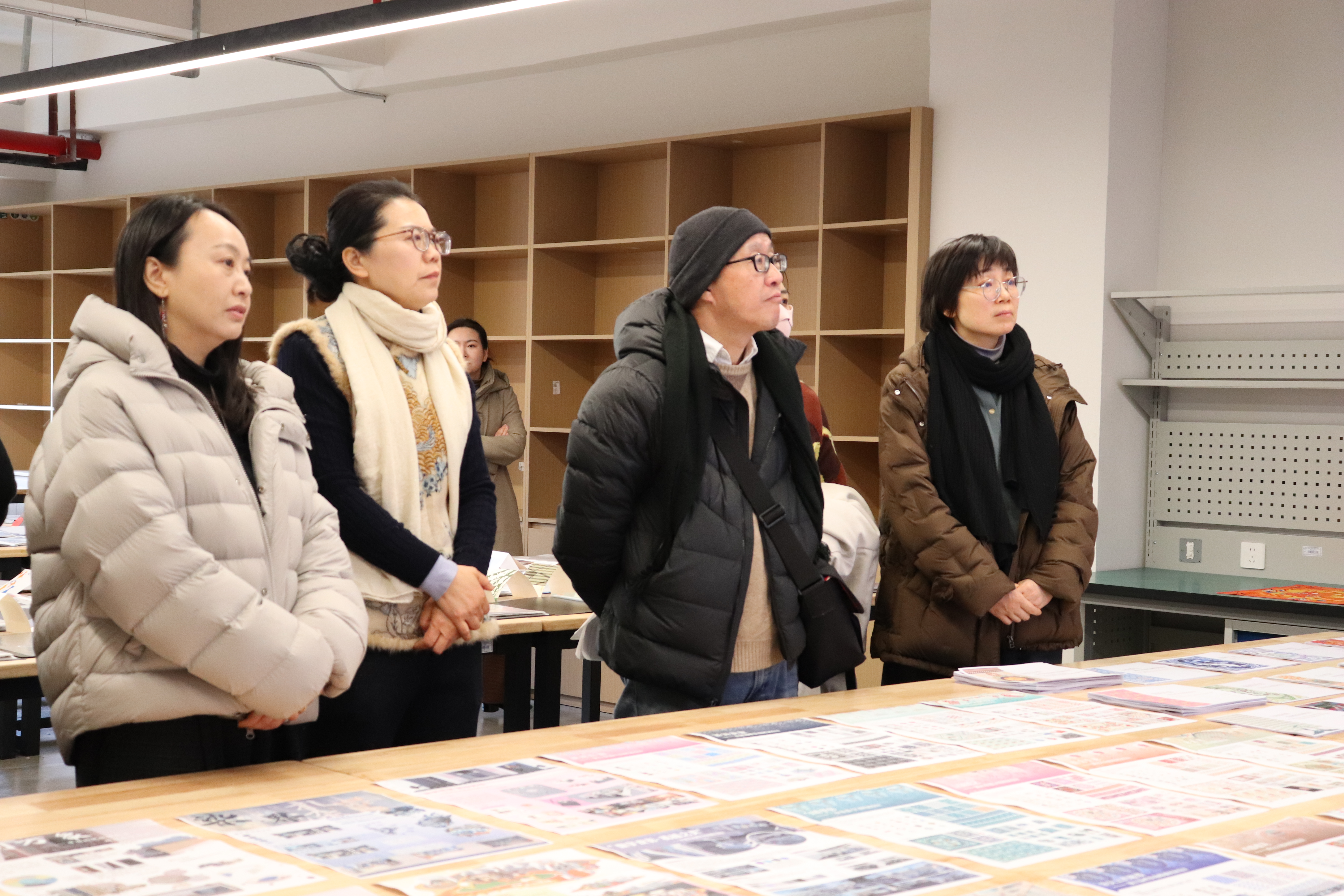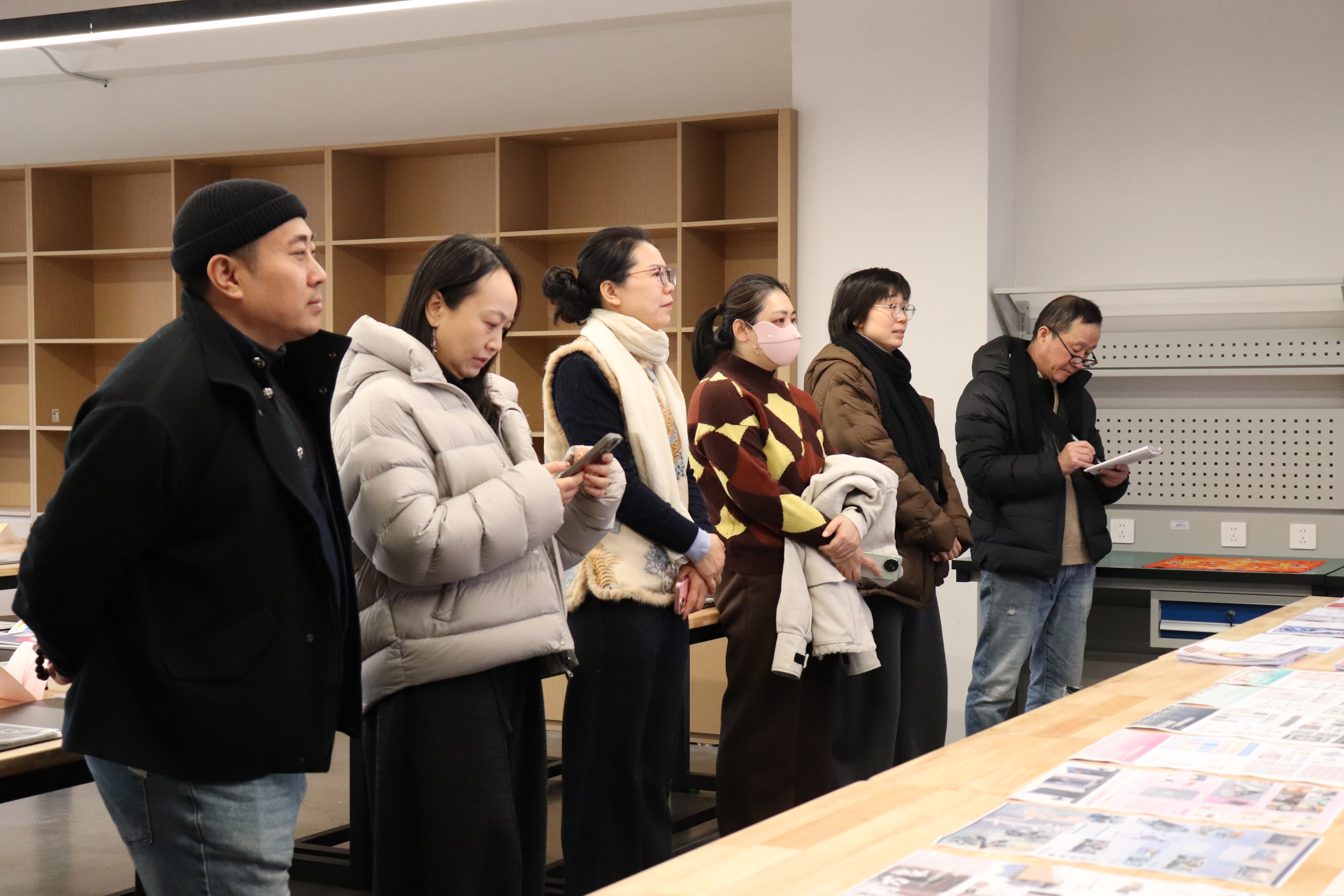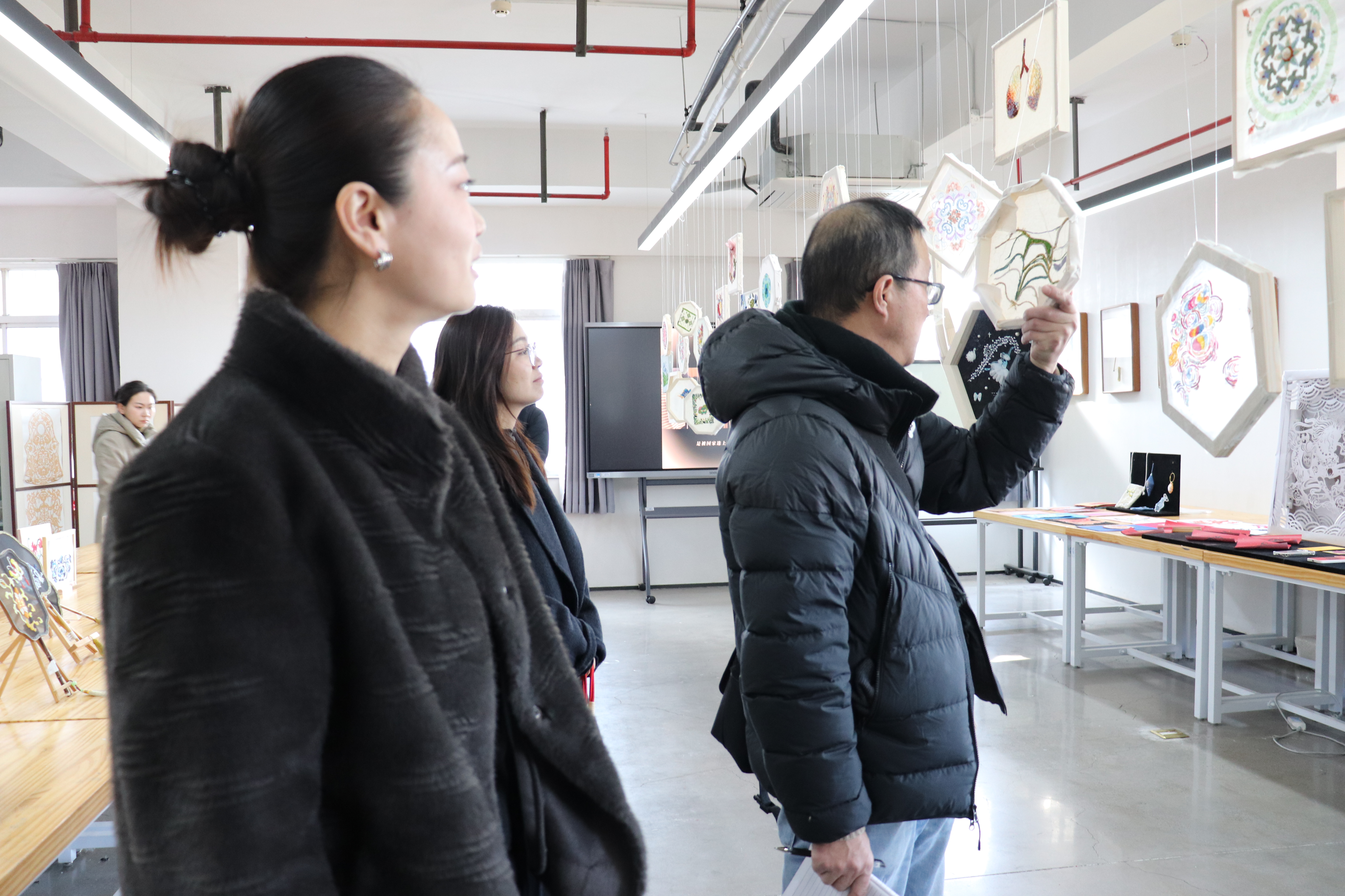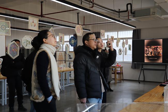 教学检查期间,手工艺学院全员教师集体观摩各教研室本学期教学成果和优秀作品:在本部教学区,重点查看文物修复与保护、民族传统技艺的阶段性教学成果,从文物残片修复到青瓷坯体制作,一件件作品尽显传统手工艺的传承匠心;在立业园实训楼,文化创意与策划、展示艺术设计、产品艺术设计专业集中展示学生作品,展现了学生的专业功底与创新思维。