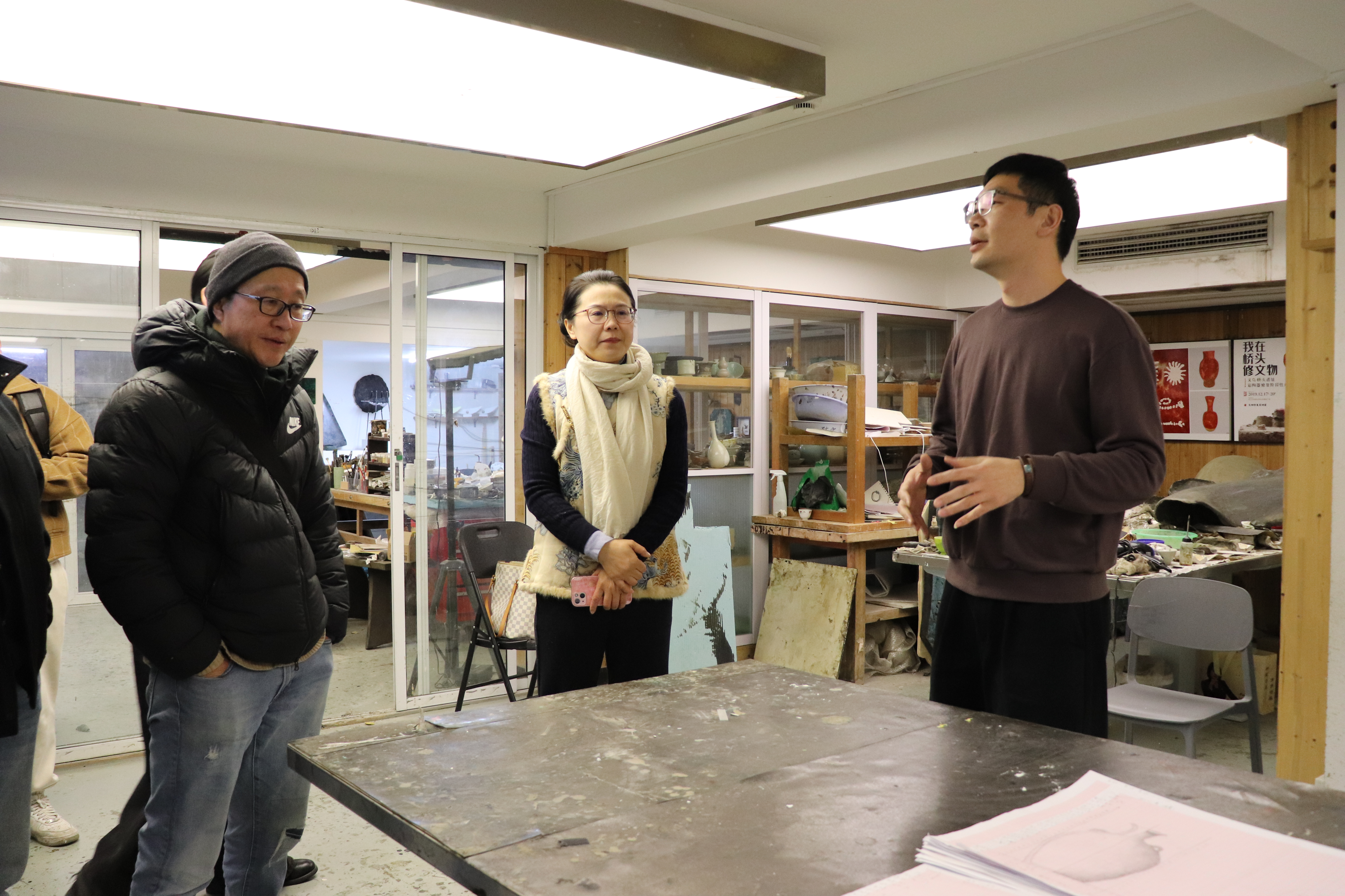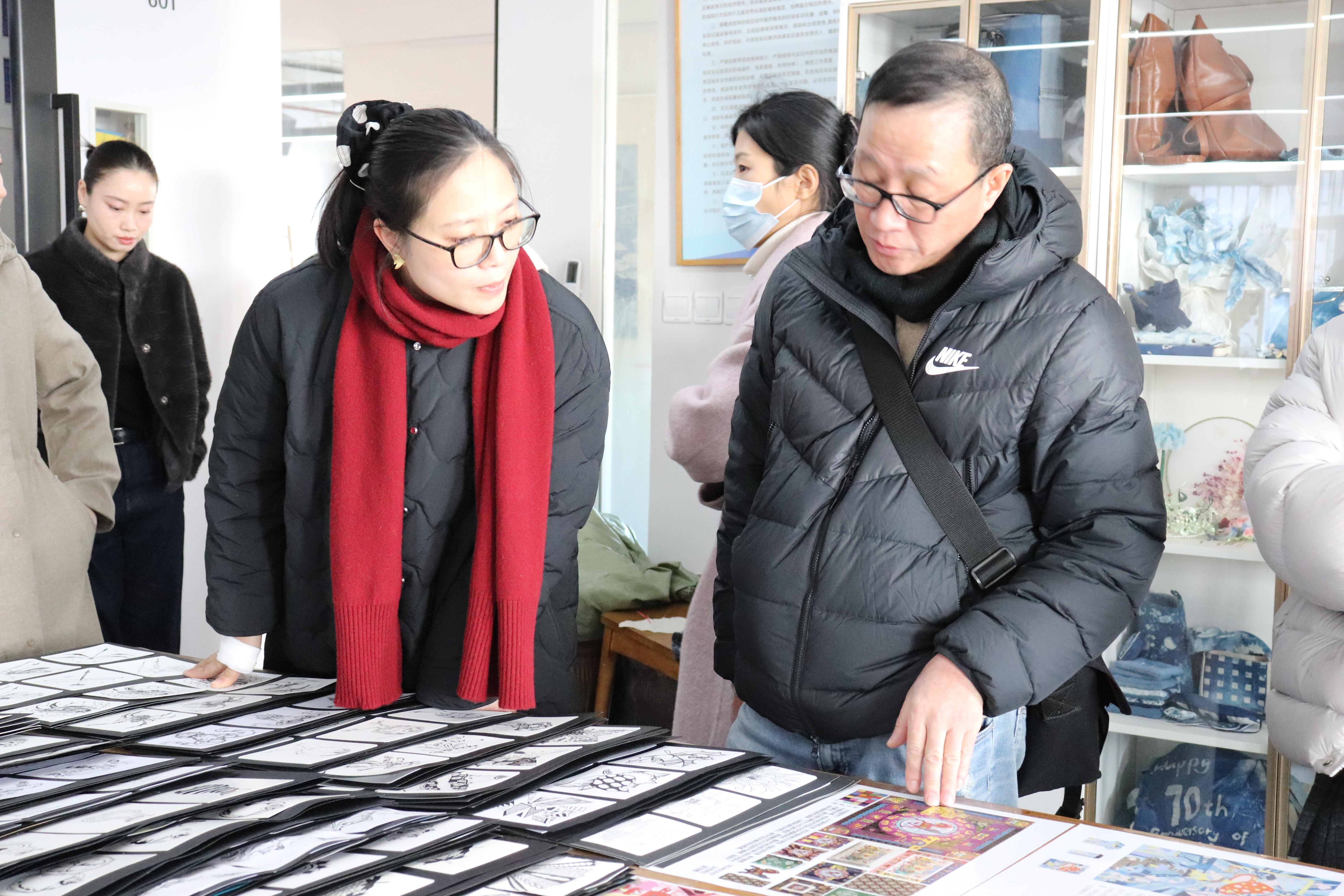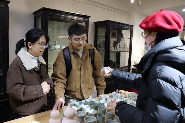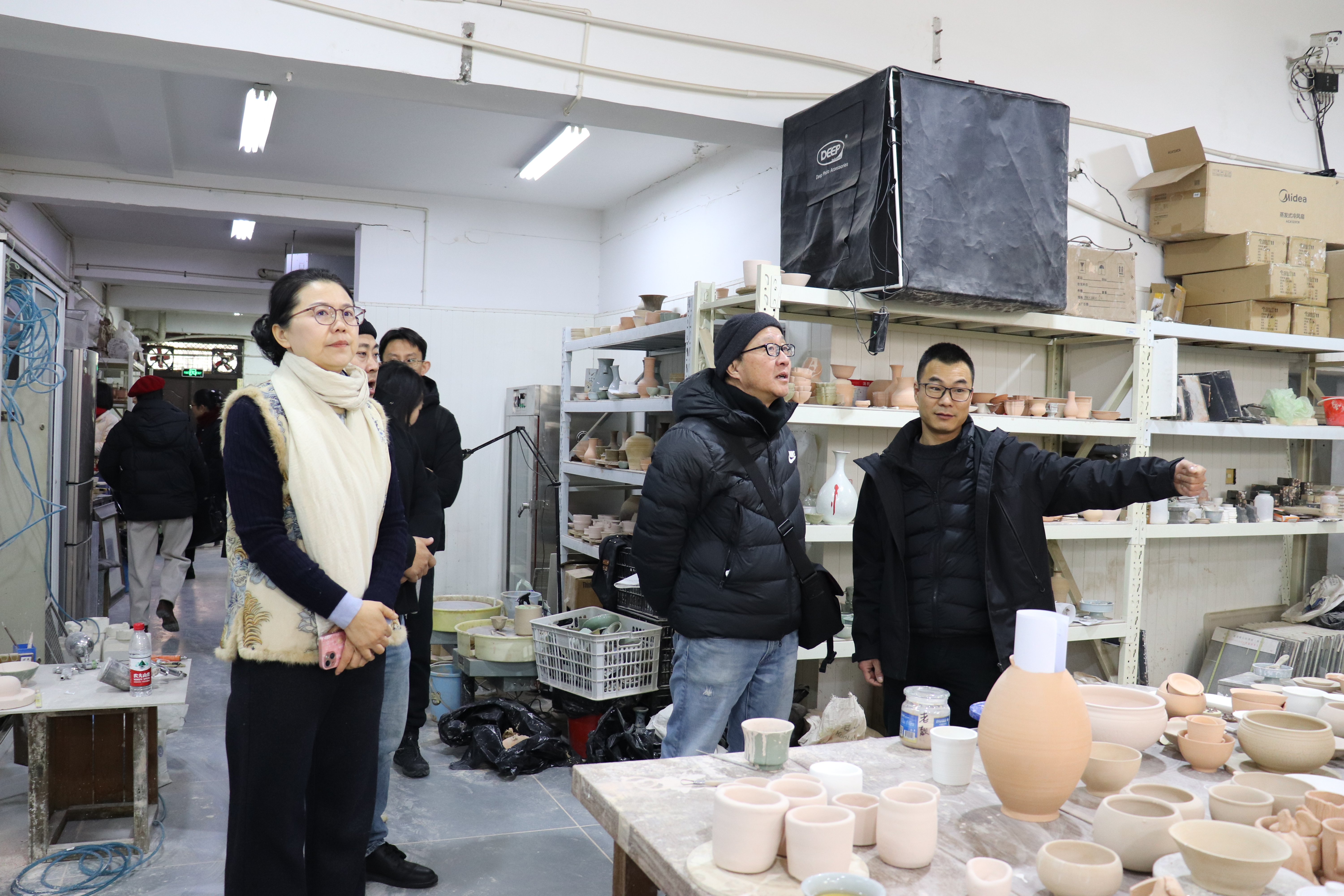 教学检查期间,手工艺学院全员教师集体观摩各教研室本学期教学成果和优秀作品:在本部教学区,重点查看文物修复与保护、民族传统技艺的阶段性教学成果,从文物残片修复到青瓷坯体制作,一件件作品尽显传统手工艺的传承匠心;在立业园实训楼,文化创意与策划、展示艺术设计、产品艺术设计专业集中展示学生作品,展现了学生的专业功底与创新思维。