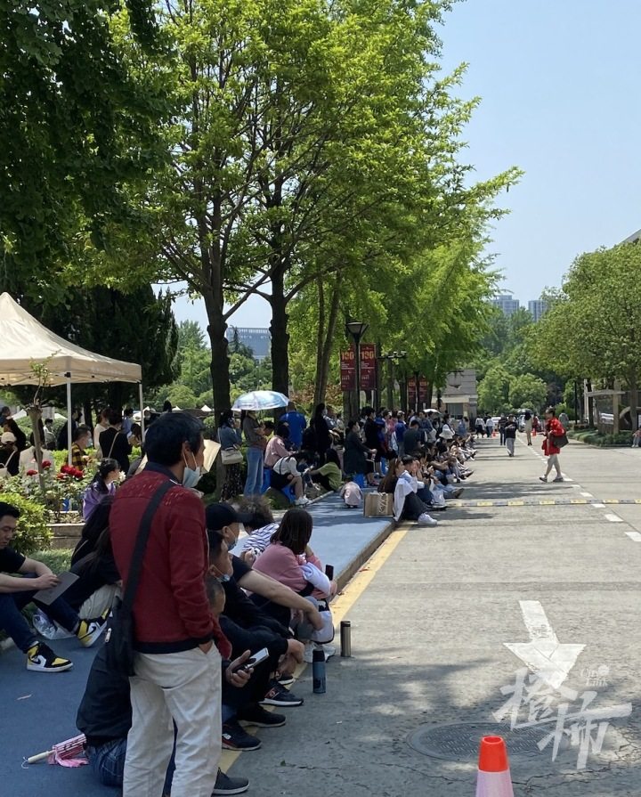 一大清早,浙艺校门前就排起了队伍,等候测温验码进入校园。