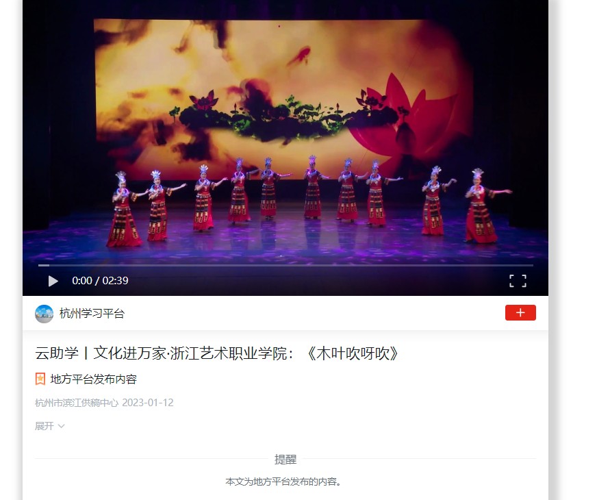 学习强国杭州平台:云助学丨文化进万家·浙江艺术职业学院:《木叶吹呀吹》
