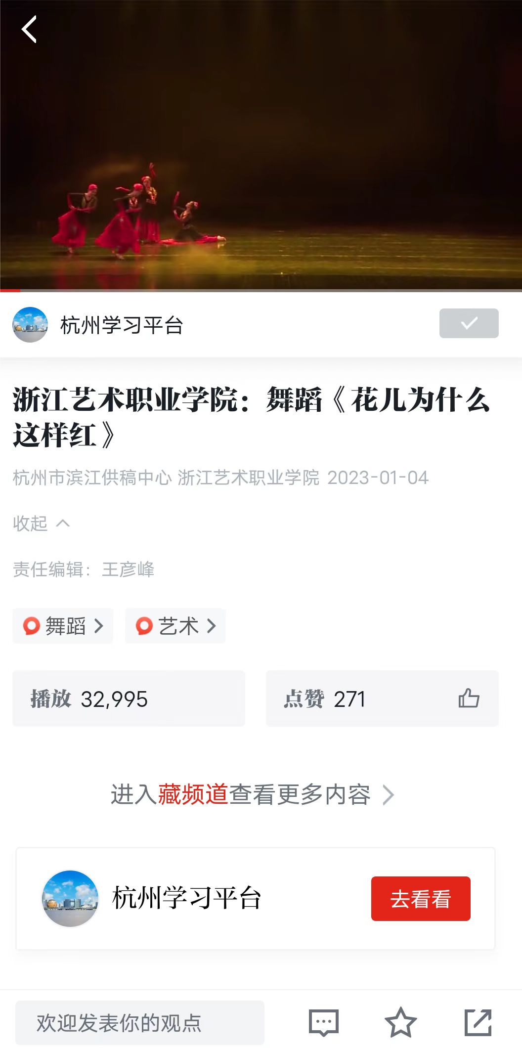 学习强国全国平台:浙江艺术职业学院:舞蹈《花儿为什么这样红》