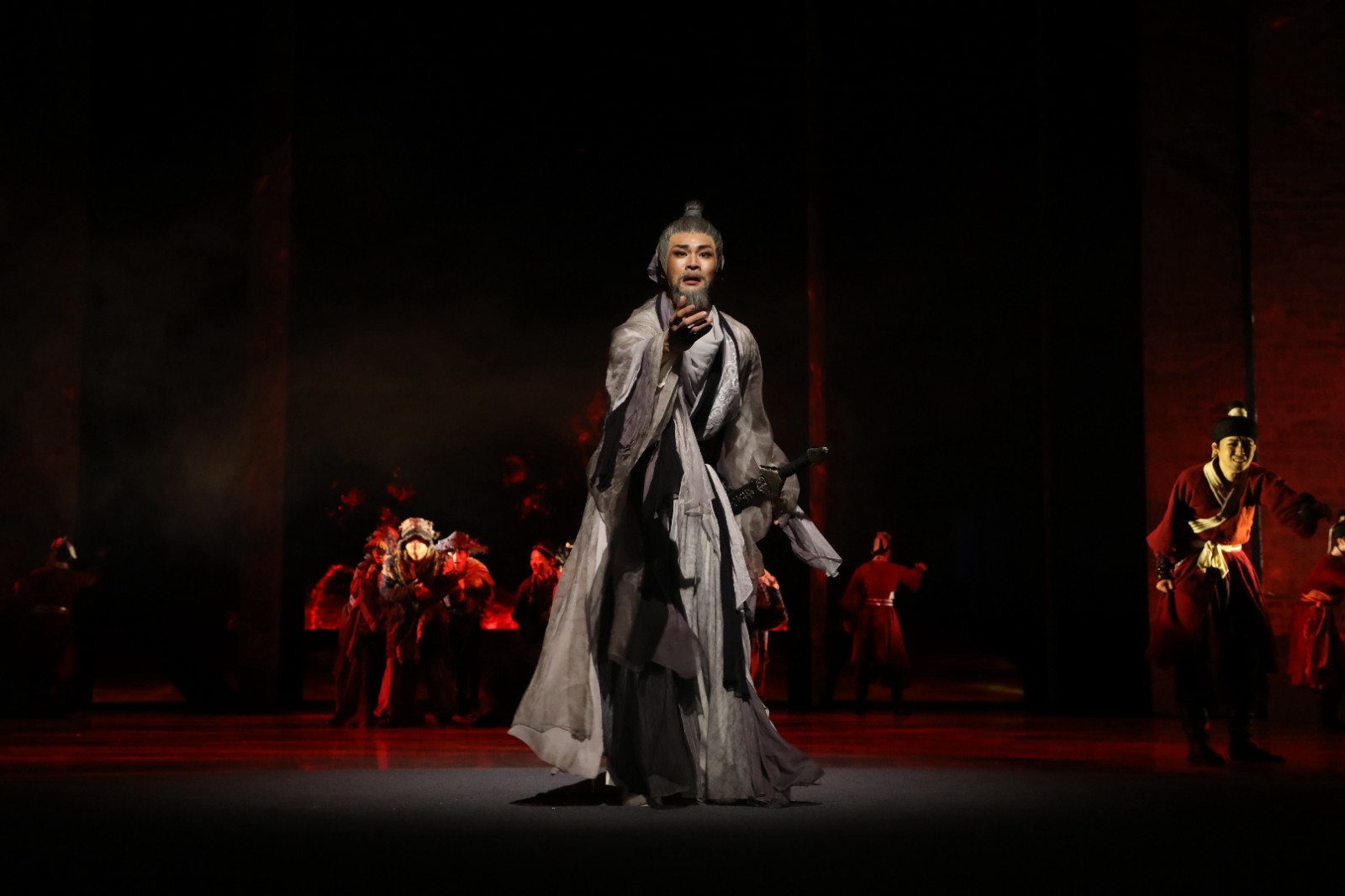 舞剧《灯火阑珊处》共分四幕,讲述了宋嘉泰年间,权相韩侂胄执掌朝政,起用老年辛弃疾知镇江府,而镇江营军心涣散、军备废弛,以北复中原为毕生之志的辛弃疾立志强军,纵谏败亦不为所挫,联合民众坚定不移地打造“万人铁甲之师”。但兵成之日竟是辛弃疾受陷罢免之时,华发苍颜的辛弃疾再一次看到了北伐失败。灯火阑珊处,“笔作剑锋长”的他用诗词勾勒出“金戈铁马”的梦中疆场。开禧三年,病危中的他最后一次穿上盔甲,向着毕生的北复之路走去……