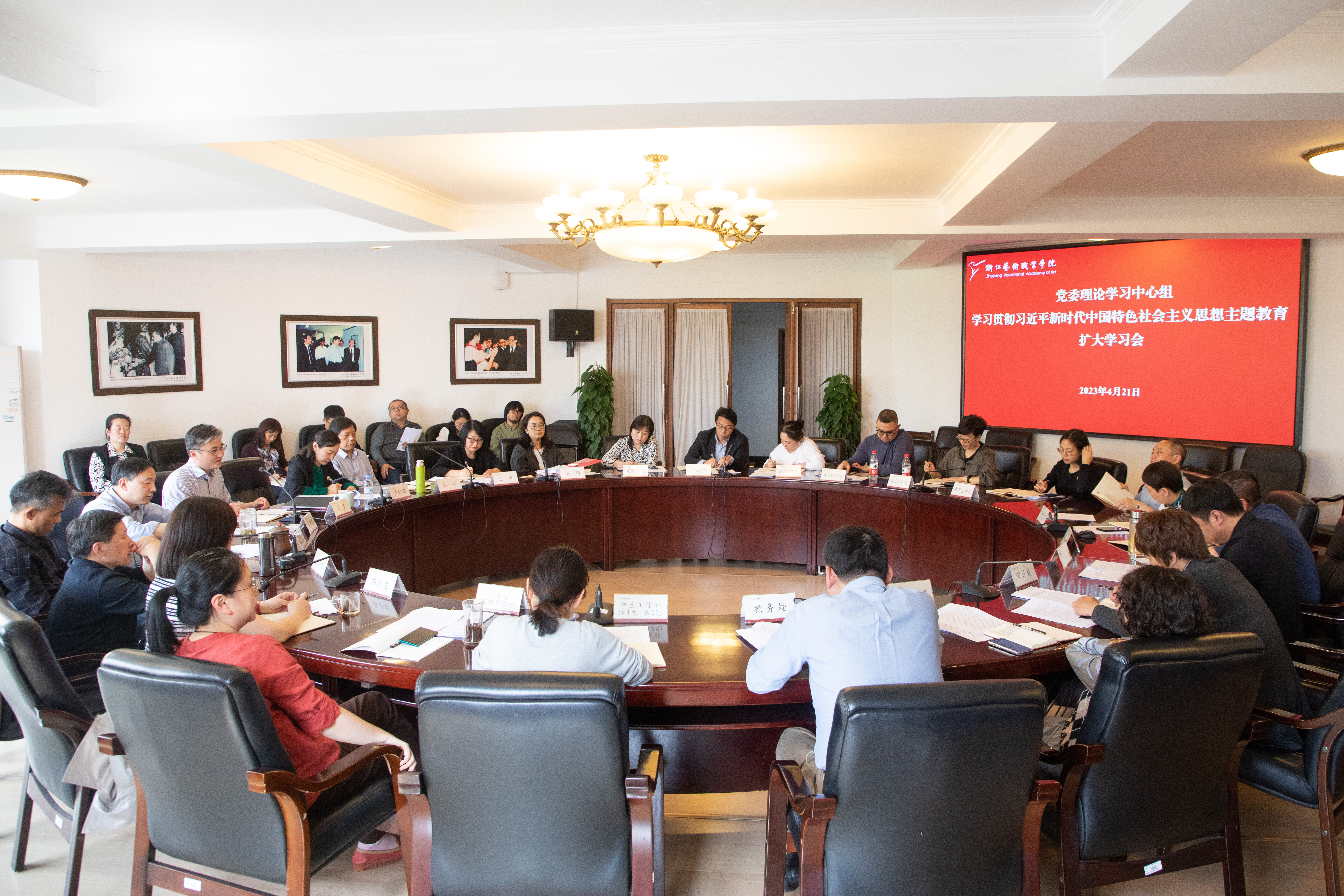 4月21日下午,浙江艺术职业学院召开学习习近平新时代中国特色社会主义思想主题教育党委理论学习中心组扩大学习会,结合主题教育要求,以“大兴调查研究”为主题,积极谋划学校高质量发展新思路。校党委书记薛亮主持学习会,校党委班子成员参加学习会,职能教辅部门负责人、二级学院党政主要负责人列席学习。