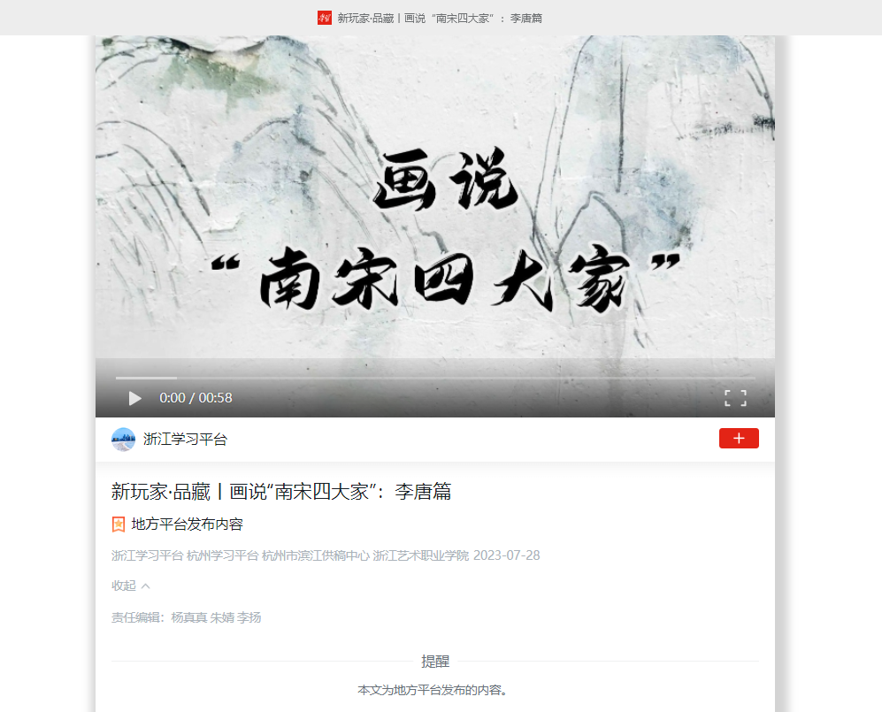 学习强国浙江平台:新玩家·品藏丨画说“南宋四大家”:李唐篇