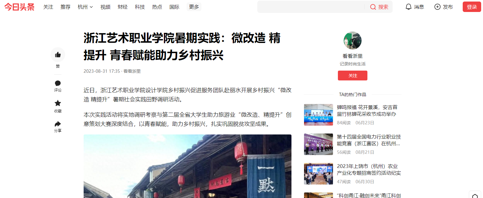 近日,浙江艺术职业学院设计学院乡村振兴促进服务团队赴丽水开展乡村振兴“微改造 精提升”暑期社会实践田野调研活动。