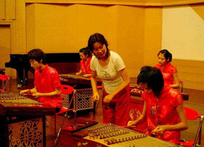 尹薇同学05直升大专段学生。通过五年的专业教学,一位品学兼优的好学生,她在扬琴同行中是学姐。每次排练、演出或低年级同学考试,见得最多的是她在帮着校音、搬琴,为参加这次民乐比赛,王慧芳老师要求尹薇同学留在音乐系器乐教研室实习,然后放弃休息时间为她上专业课。