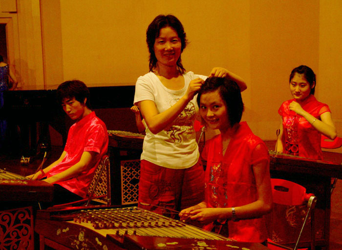 在这次比赛中,王慧芳老师指导的附中汪宇炜同学也获得专业B组第一名的优秀成绩。男孩子不够用功贪玩,王慧芳老师觉得他是一块非常好的扬琴苗子,领悟力比较强,对乐曲处理有一定的表现能力。为教好这样的学生,王慧芳老师首先从思想上、生活上关心、照顾他。每次专业课第一句问的准是早饭有没有吃?身体是最要紧的。如果没吃,王慧芳老师给他买点心,再开始上课。专业上总以鼓励、表扬为主,渐渐地,师生之间接近了距离,通过三年的专业教学,汪宇炜同学的扬琴演奏技术进步飞快。首先是提高了自信心,其次是增加了舞台实践能力,克服了僵硬的演奏方法,提高了快速半音阶的干净度,对乐曲理解有了更深层的把握。为了让男孩在舞台上更亮、更彩,老师在短短的一天内给他去丝绸市场买面料,找师傅做演出服。经过美美的包装,一个漂亮、大方、演奏成功的汪宇炜展现在评委老师的面前。