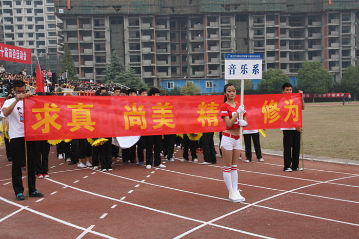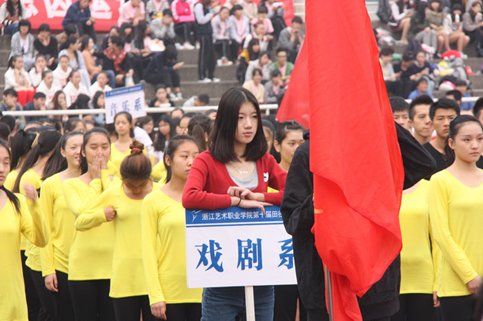 同学们青春活力的身影,老师们带队高昂的热情,本届运动会的入场队伍打出了头阵,最先吸引师生们的眼球。戏剧系、音乐系、美术系、附中、舞蹈系、影视技术系、文化管理系依次接受主席台的检阅。在激昂的音乐声中,运动会的氛围在浙艺院的操场上洋溢开来,以一种轻松大气,活跃开怀的气势在秋日的暖阳中绽放起艺院独特的芳华。
