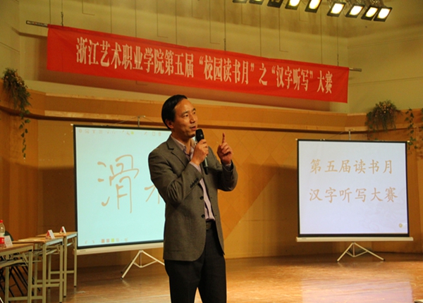 4月17日晚,浙江艺术职业学院第一届汉字听写大赛在音乐厅举行。活动受到学院师生的热捧,还未开场就人头攒动。党委委员、纪委书记夏开堂,院团委、图书信息中心、基础教学部负责人和各系党总支副书记出席活动。六支代表队共十八名选手进入决赛。
