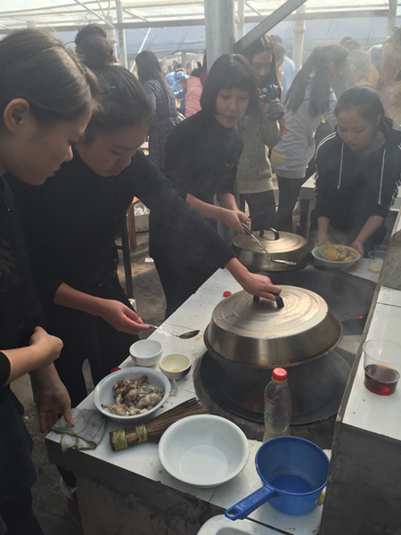 在“自给自足”环节中,由周佳佳和苏志灶各带一队,根据每个人的不同能力进行各项分工,大家干劲十足,克服各种困难,将一道道美味可口的饭菜端摆在了桌上。