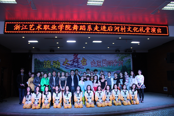 12月6日,浙江艺术职业学院舞蹈系“农村文化礼堂”小分队走进湖州安吉县后河村,举行“送欢乐进文化礼堂,长实干走社会基层”服务活动,为后河村村民献上了一场综合性演出。