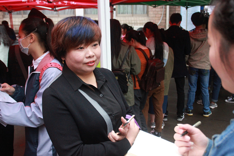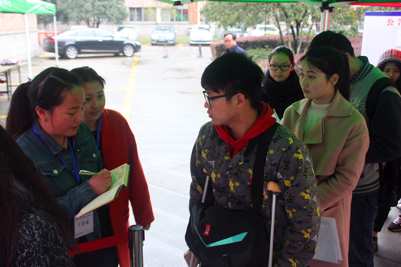 工作人员井然有序地进行着工作,对待考生们提出的问题耐心解答。他们不停地回答同样的问题,给予考生亲切的提醒。其中,十几名学生志愿者更以师哥师姐自居,给考生带去不一样的温暖和热情。
