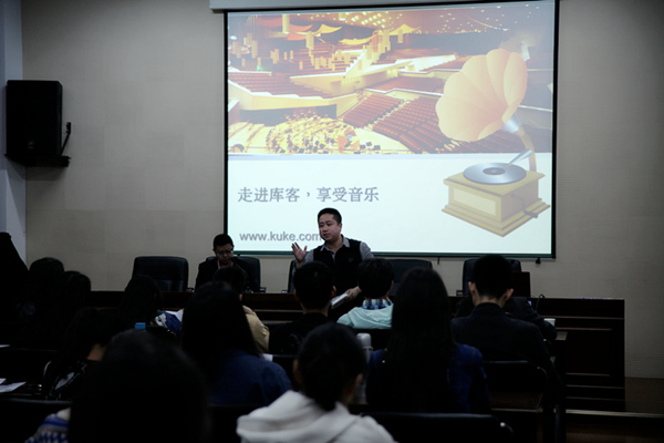 讲座中,读秀学术搜索培训专员徐鸽首先为师生详细介绍了“读秀”的特点和各项检索技巧,并简要介绍歌德电子书借阅机使用方法。随后,万方知识服务平台培训专员刘叶子以《我的论文我做主》为题,介绍了如何利用万方数据库帮助论文选题和写作。最后,川页科技有限公司的许建宾简要介绍了KUKE数字音乐图书馆和起点自主考试学习系统的情况,并与师生进行了愉快互动。