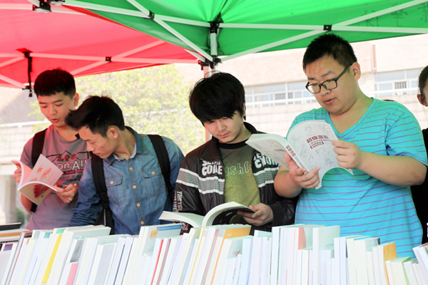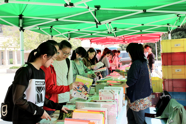 八号楼前人头攒动,一个个帐篷搭了起来,一摞摞书抱上桌面,图书现场展示推荐活动作为本届“读书月”的第一项内容率先亮相。共有1000多种社科、艺术、文学类最新图书参展,所有图书均打折向师生出售,可根据本人需要向图信中心推荐图书,由图信中心查重后统一购买,争取在一个月内上架供师生借阅。活动期间扫一扫图信中心新推出的微信公众号,便可得到精美礼品一份。此次图书现场展示推荐活动,师生读者踊跃购书荐书,个人购买图书近百册,荐购量近千次。