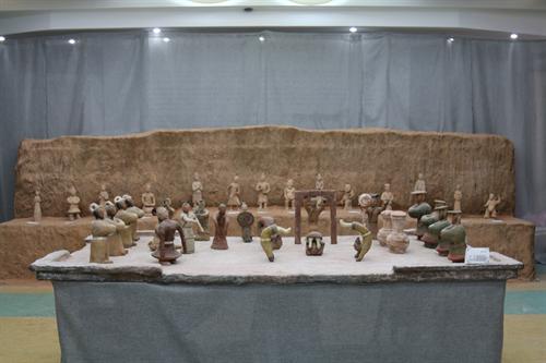 展览现场历史文化气息浓厚,充满了严谨肃穆的氛围,展品以博物馆实景还原和仿古实物为主,分成“博物馆设计作品展”、“墨彩无华”(博物馆绘画作品展)和“梦想钱塘”(六和塔微景观制作展)三个主题,分别陈列了博物馆设计图、古生物化石、仿古陶俑、国画、插画、微景观等作品。
