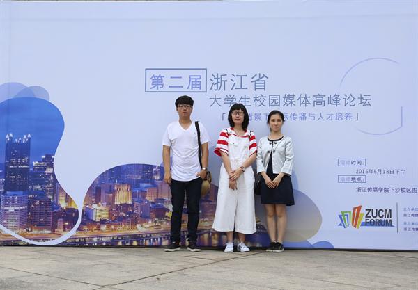 5月13日,应浙江传媒学院党委宣传部与中国(浙江)高校传媒联盟邀请,浙江艺术职业学院学生记者团成员王熙强、褚逸琳、郑奕前往浙江传媒学院参加“第二届浙江省大学生校园媒体高峰论坛暨G20背景下国际传播和人才培养”主题研讨会。
