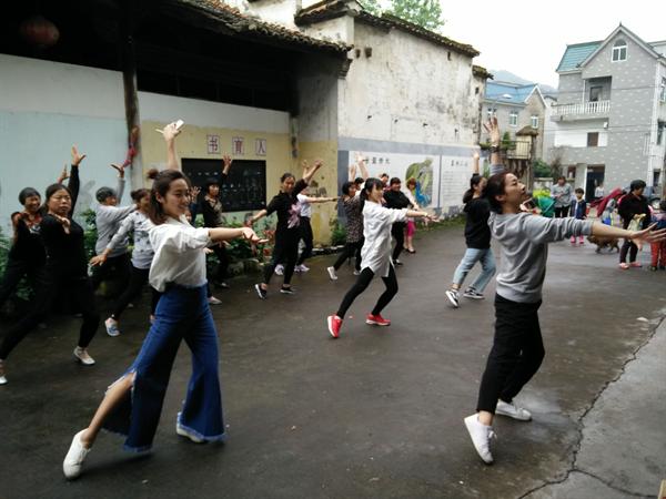 根据学院年度工作部署,结合学生专业教学实践,本学期戏剧系积极对接地方文化发展、扶持文化建设,增加服务内容、创新服务形式,先后与台州市黄岩区文广新局、江山市文广新局、南浔文体局签订了基层文化服务定点演出协议,已开展农村文化礼堂志愿服务演出8场。同时组织表演艺术、越剧专业两个班级学生先后赴江山市、舟山定海区分别开展为期一周的教学实践活动,为两地农村开展排舞、村歌加工、传统文化创作提炼活动,均取得较大实效,得到当地领导和村民的充分肯定。