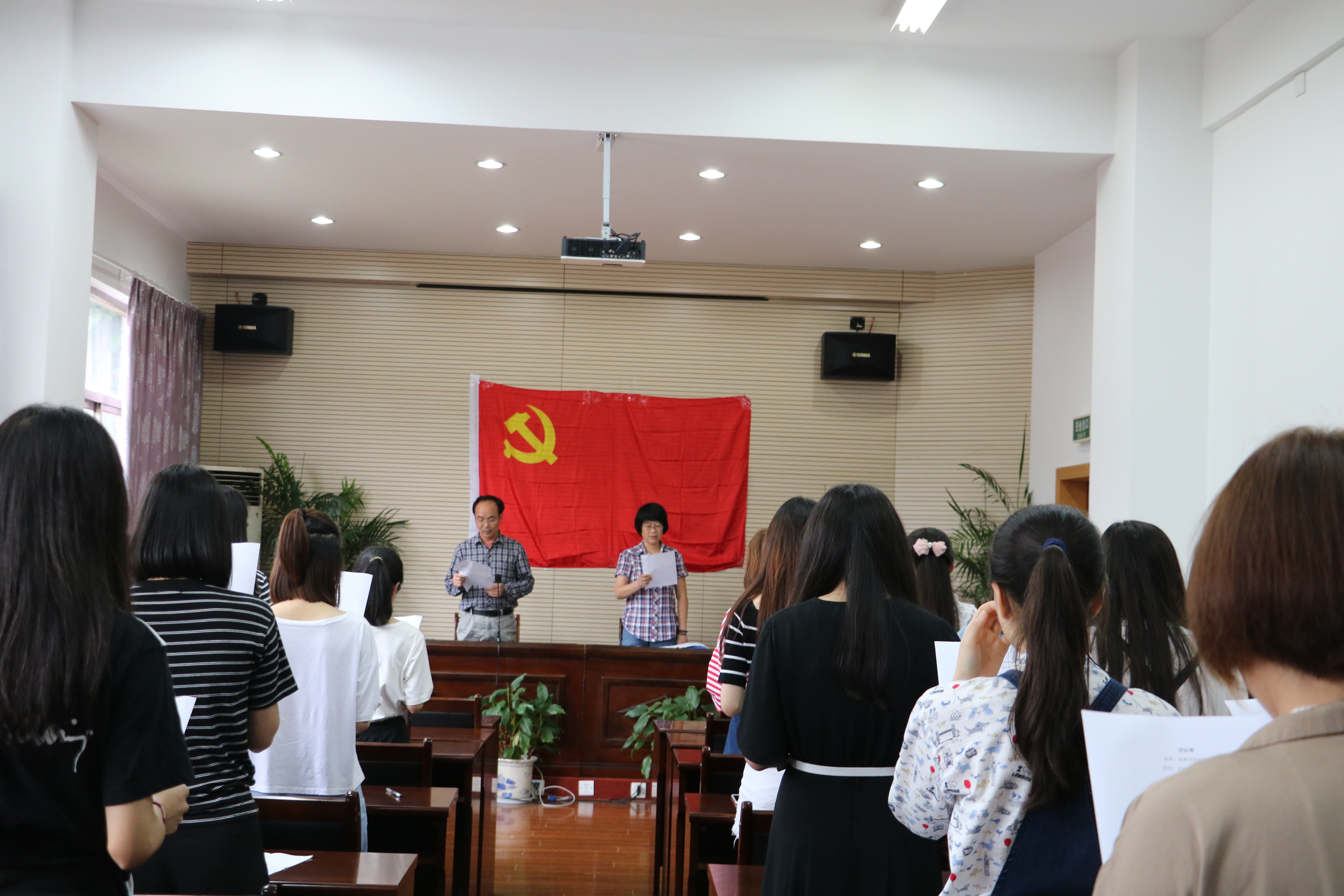 仪式由系党总支宣传委员郑智武主持。系党总支副书记钱杏芬按照学院“两学一做”总体要求,解读了“四个意识”和“四讲四有”,鼓励党员师生积极践行,做合格党员。她从历史的角度回顾了入党宣誓仪式的演变及其对党自身建设的重要意义,以“现实—历史—现实”的逻辑诠释了入党誓词的深刻内涵,讲解了作为一名合格共产党员应有的文化担当。