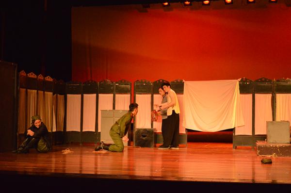 11月23日,史昕、龚利指导的学生带来了七个作品。《窝头会馆》讲述了北平解放前一年,生活在一个叫“窝头会馆”的平民小院儿里的几户老百姓的悲与欢、离与合、希望与绝望。《榆树下的欲望》让我们看到了在金钱占统治地位的社会里,人的情感与本性是如何被压抑与扭曲的,对财产的欲望使父子、母子、夫妻与兄弟之间尔虞我诈。 《无人区》通过一系列黑色幽默而又无比沉重的故事,生动刻画了无人区内各色人等泯灭人性追逐利益的丑恶嘴脸!《家有九凤》开场就设置了悬念:春节,平遥古城的听雨楼里初老太太带着八个女儿正在吃团圆饭,离家八年在北大荒插队的七凤突然归来还怀了身孕,听雨楼里炸开了锅……话剧《群猴》是一出讽刺喜剧,背景是上世纪40年代,部分卖国党派为争当伪国代表,各种势力的人物粉墨登场买卖选票,争吵叫骂甚至动刀动枪,活像一群丑态百出的猴子。《黄金大劫案》讲述了一个关于“革命英雄梦”的故事,天降大任的当街小痞成为众矢之的。 《黎明战线》,战场上,黑暗的月夜,浓重的硝烟,受伤的士兵。黑暗既然来了,就也有离去的那一刻,那就是突破天际的黎明,让这黎明驱散黑暗。