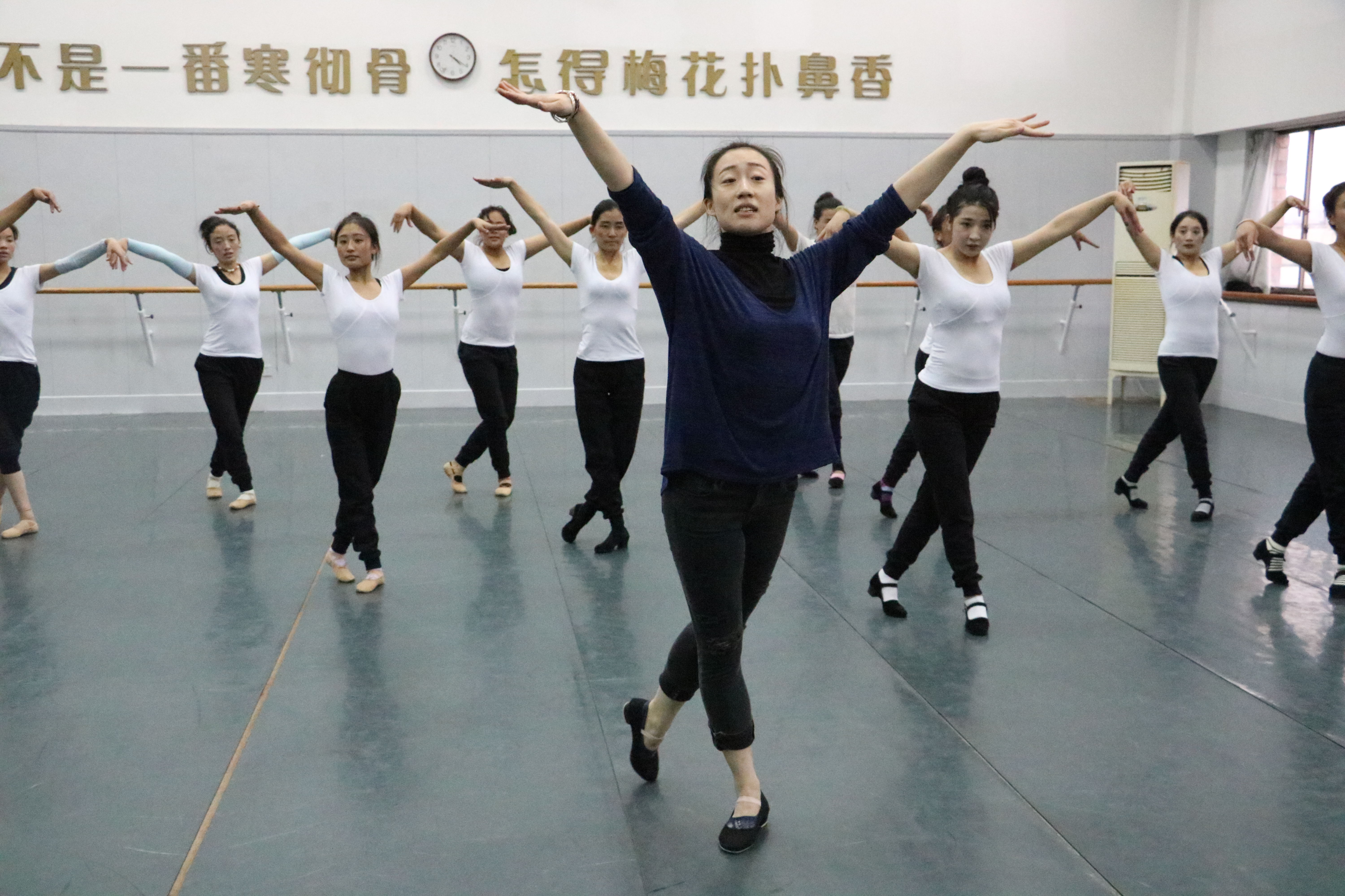 西藏班学员想念着家乡的牦牛肉,也不折不扣适应着做浙艺人。和浙艺学生一样,他们会抽空去校外走走,甚至会在周末买上几张高铁票去上海观摩。在学习过程中,或许他们的一字马不那么专业,他们的下腰不那么灵活,他们的动作也不那么整齐,但他们每天都会让一字马更直一点,下腰更低一点,动作更整齐一点。学员财旺久美说,在一个多月培训中大家都希望能多学习,多吸收,回到西藏把学到的再教给学生。
