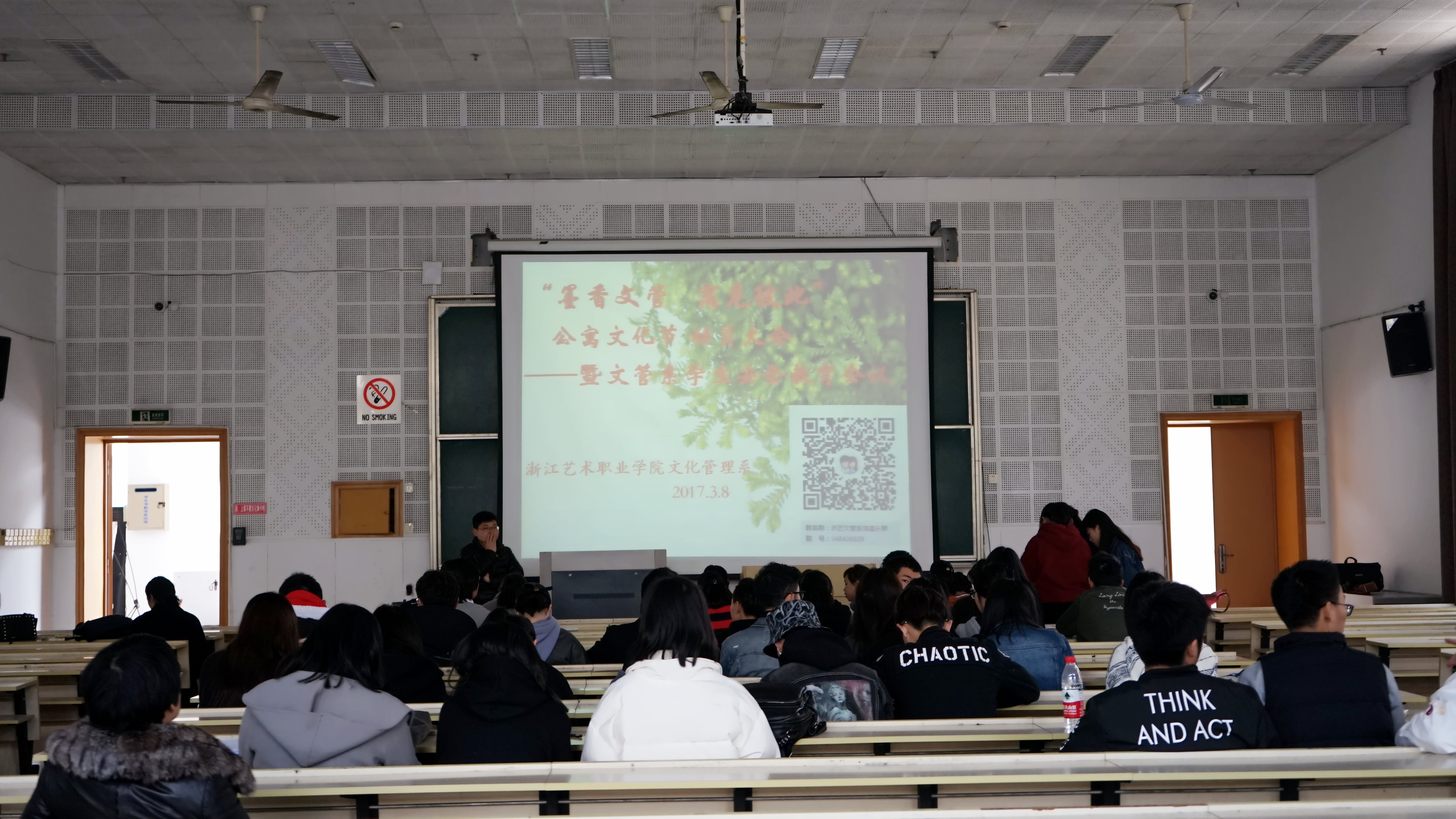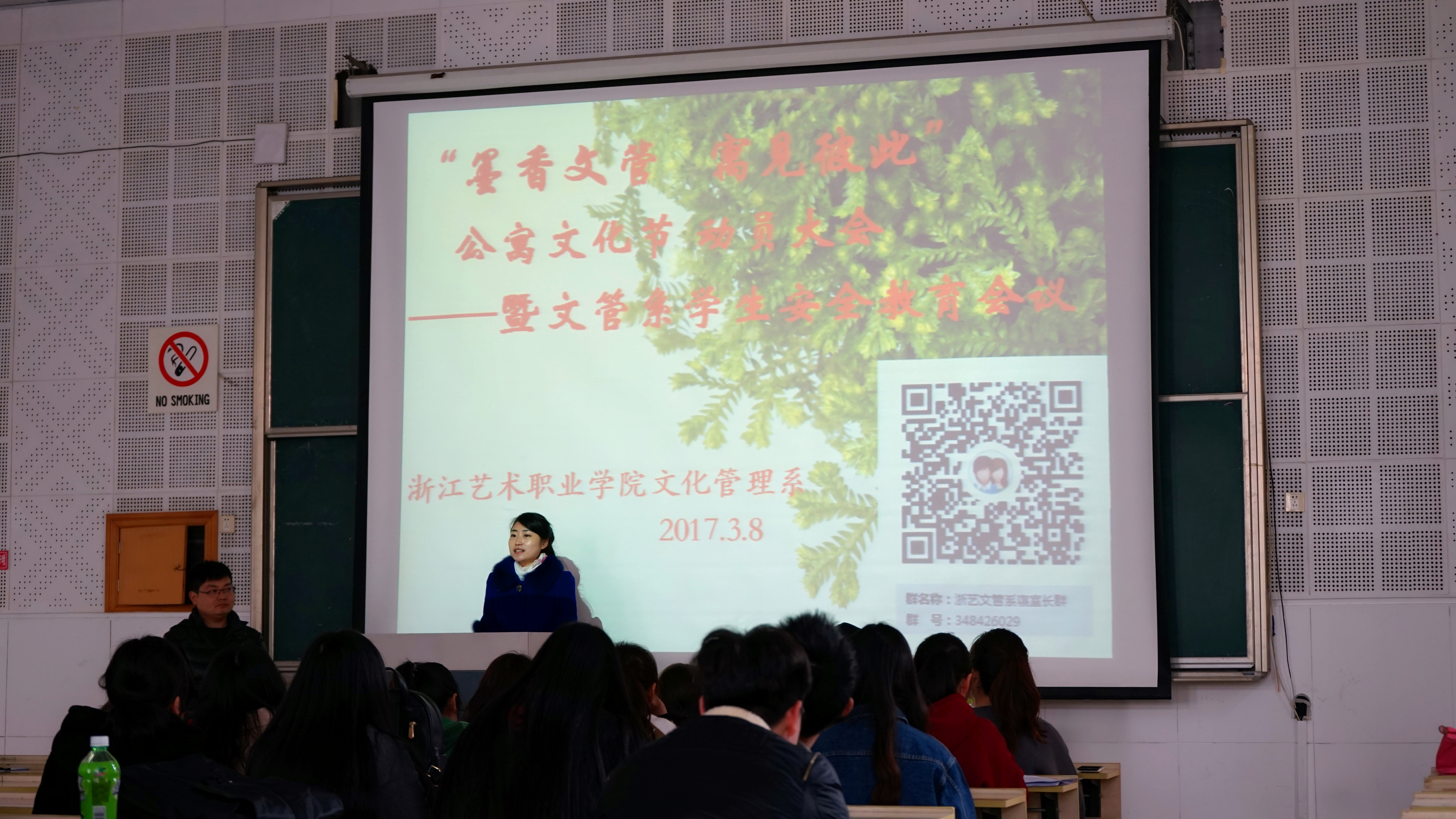 3月8日,文化管理系“墨香文管,寓见彼此”首届公寓文化节动员大会暨学生安全教育会议在七号楼阶梯一教室举行。系党总支副书记钱杏芬和全系寝室长、各班干部等出席会议。