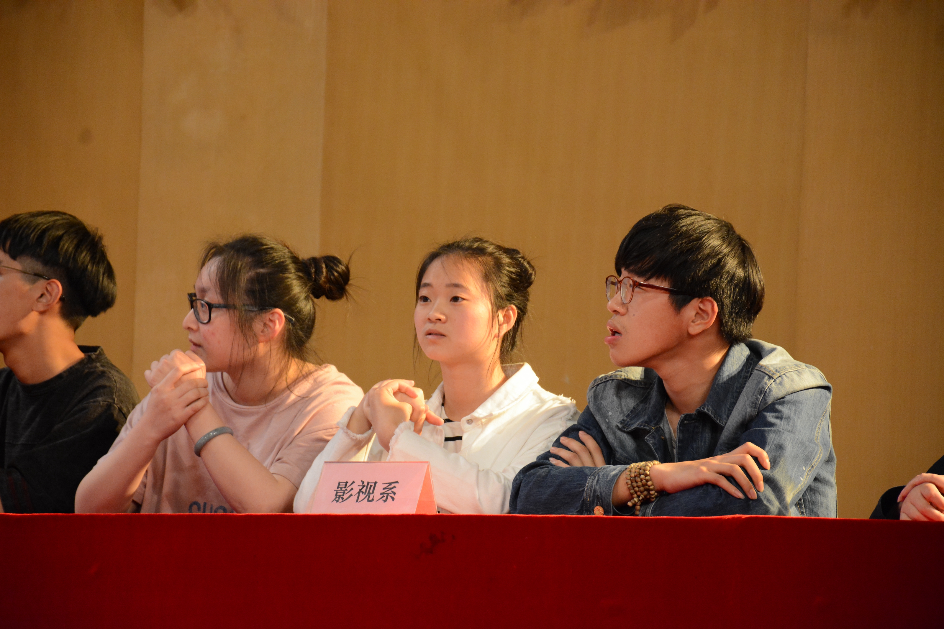 经过海选,共有六支代表队的18名选手脱颖而出,进入到此次大赛现场。比赛为团体赛,采取积分制,设置了“听上句,接下句”、“诗词常识问答”、“识别诗句”和“表演猜诗句”等环节。在比赛过程中,影视技术系在第一轮“听上句,接下句”及“诗词常识问答”中表现优异,正确率最高,而戏剧系在第三轮表演猜诗句环节中,凭借自身的专业优势,以生动形象的表演用最短的时间内答对题目。在紧张统分间隙,戏剧系的陈力豪同学作为“艺苑朗读者”活动的代表,朗诵了《大漠敦煌》,气势磅礴的昔日战场如在眼前,黄沙百战穿金甲,不破楼兰终不还的呐喊仿佛在耳边回荡。