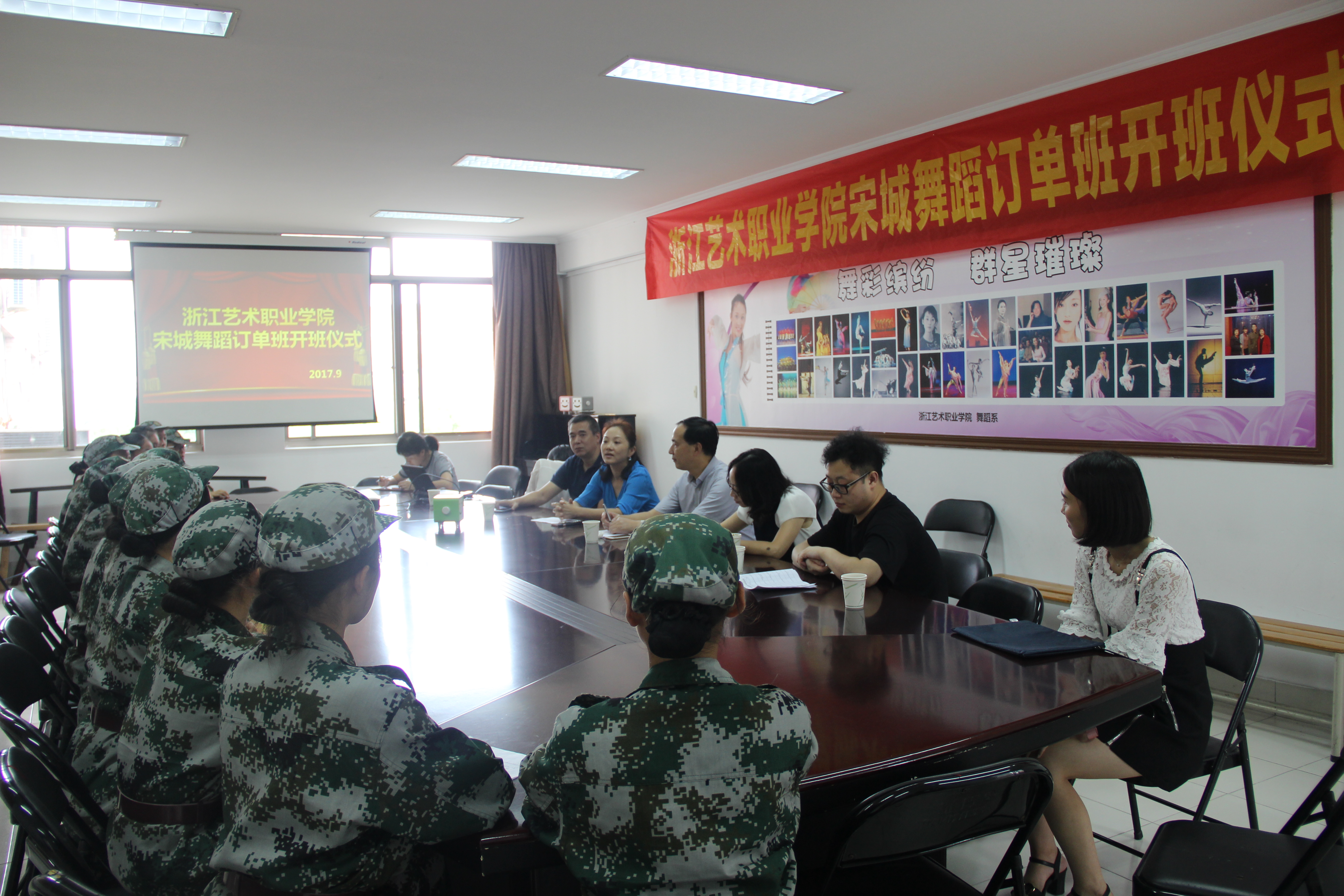 9月15日下午,浙江艺术职业学院舞蹈系宋城订单班在4409会议室举行开班仪式。学院党委委员、副院长夏开堂出席并发表讲话。宋城集团人力资源部副总经理王玲飞、舞蹈系副主任曹亮红、舞蹈系党总支专职副书记吴颖、系主任助理王设忠参加及宋城订单班同学参加。
