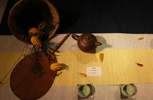 8207室是牟赟同学的个人作品展——《壶中日月》明清紫砂壶特展。由陈子达老师、周科宇老师指导,展示了明清各类紫砂壶。牟赟还向大家表演了茶艺,紫砂壶在她娴熟的技艺、优雅的举止下,变得生动可爱,展览台上摆放了一些小茶点,看起来非常美味,下雨天,茶与茶点更配哦!