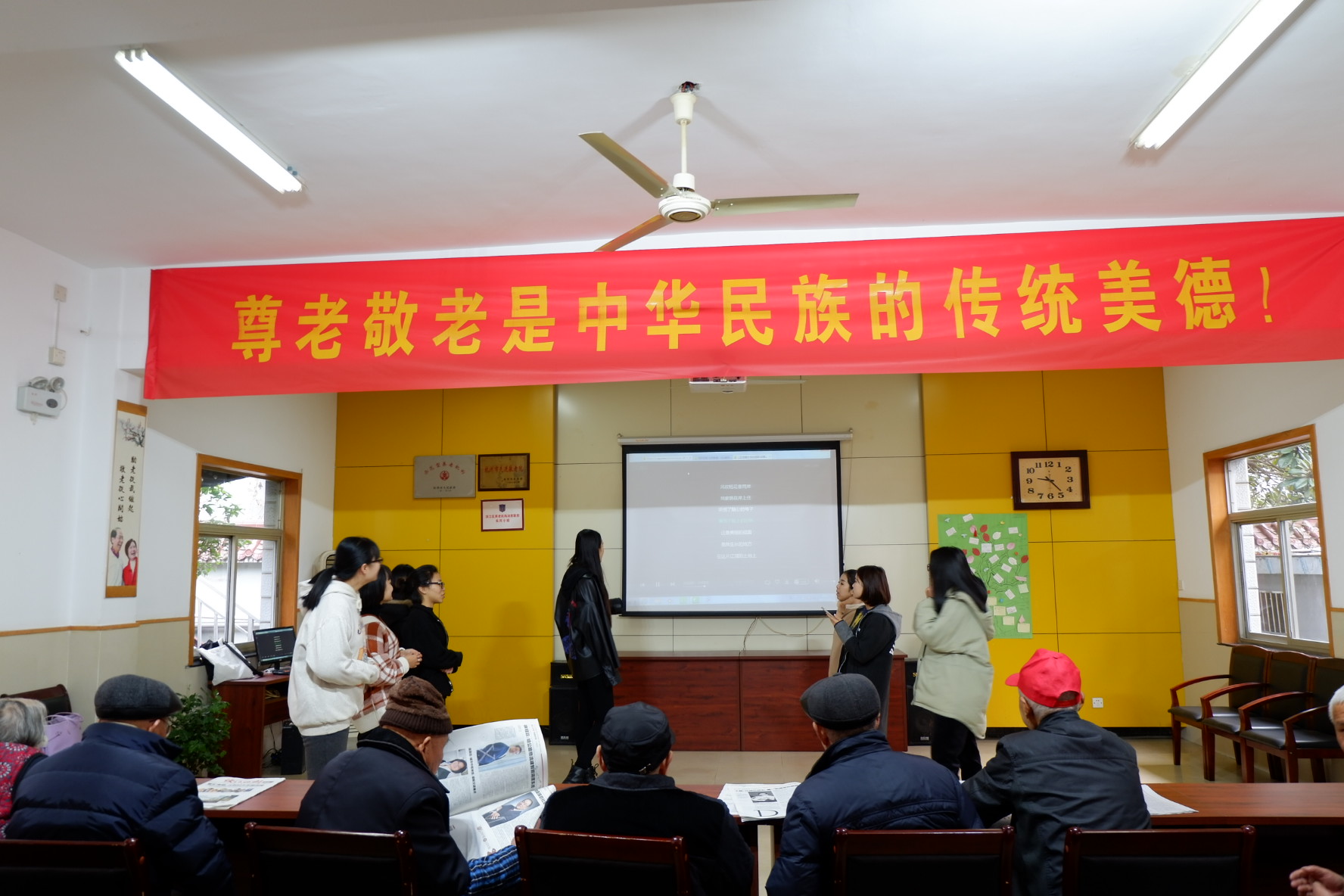 为弘扬中华民族尊老、敬老的传统美德,12月3日上午,东冠校区学生会组织志愿者前往滨江区长河街道敬老院开展“树敬老尊贤 弘传统美德”志愿服务活动。 上午8时,志愿者们为老人们送去了欢声笑语,献上了一份温暖和关怀。长河街道敬老院院长亲切接待了师生一行,称赞同学们的爱心善举。志愿者们贴心地将老人搀扶到活动室,表演了《歌唱祖国》《没有共产党就没有新中国》《外婆的澎湖湾》等精心准备的节目,老人们的脸上露出了温暖的笑容。有位爱唱歌的老爷爷还拿出了口琴和大家互动,94岁高龄的老奶奶表示很喜欢同学们准备的节目。志愿者们拿出自带的工具,帮助老人们擦窗台、抹扶手、整理房间卫生、修剪树枝、打扫院子,搀扶老人晒太阳散步,陪他们聊天看报、捶背按摩,听老人讲过去的故事,与老人分享自己的校园生活。 通过此次活动,志愿者们奉献了爱心,收获了感动,充实了记忆,并希望以此呼吁更多的人关注“空巢老人”这一社会群体,努力献出自己的爱心。 |