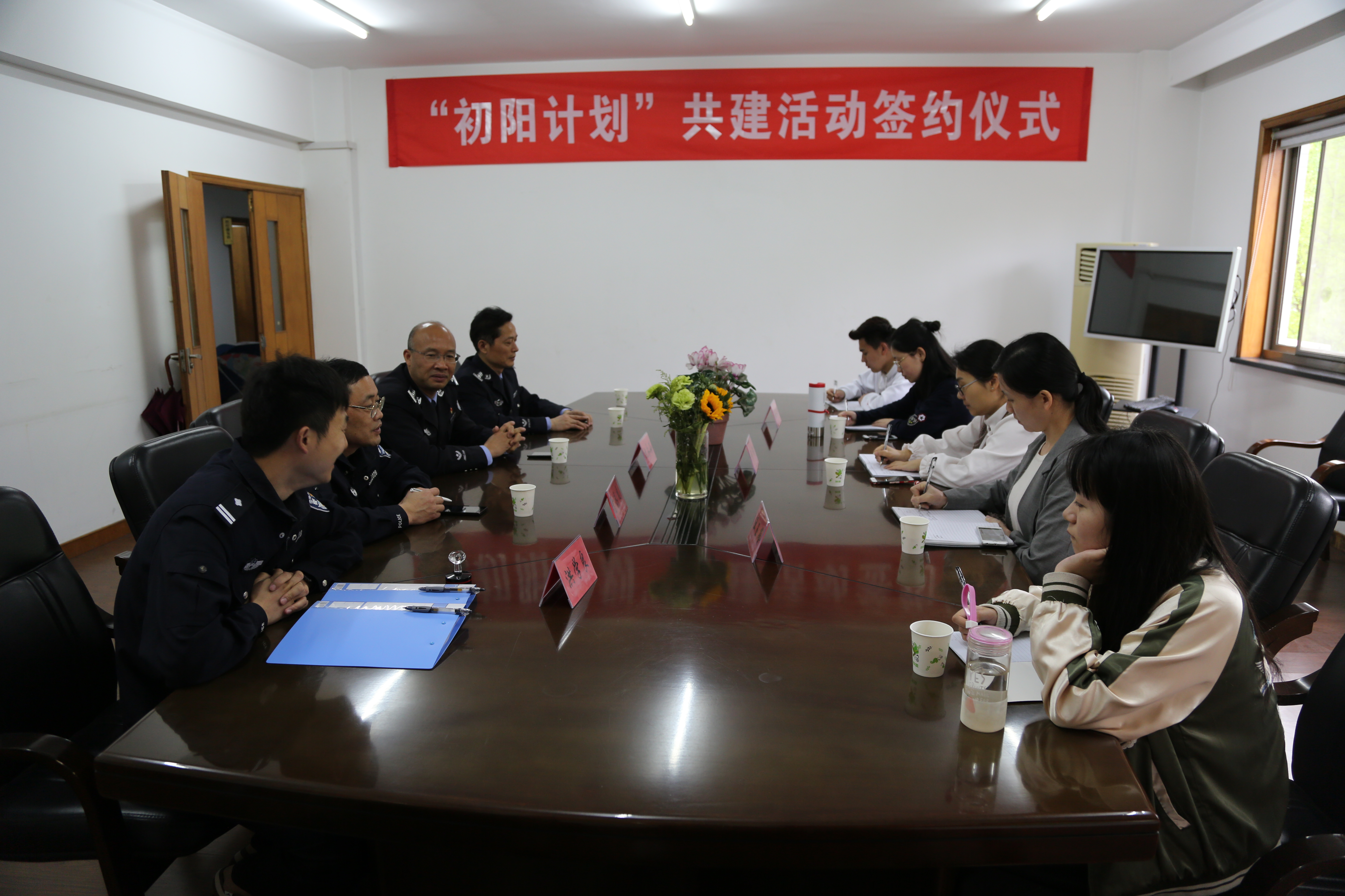 上午10:00,座谈会在戒毒所二楼会议室召开,戒毒所党委委员、副所长沈永海,戒毒矫治科科长裘学庆,二大队队长雷昌良等对浙艺戏剧系一行的到来表示欢迎。双方对本单位情况做了简单介绍,对文化共建活动进行了深度沟通。会后,举行了“初阳计划”文化共建活动签约仪式,“所系共建”活动正式启动。沈永海表示,希望以这次活动为契机,深挖合作潜力,充分利用好各自的优势,在“文化戒毒”这个课题上做好文章,积极探索戒毒矫治新方法。浙江艺术职业学院戏剧系党总支专职副书记许瑛表示,青少年毒品预防教育是贯彻落实学生思政工作的重要举措,系部将积极组织力量,策划好“文化进所”,创作禁毒、戒毒文艺作品,同时借戒毒所之力,开展法治禁毒教育,帮助学生树立法律意识。随后,戏剧系一行参观了戒毒所戒毒人员工作车间、食堂和演出会场等。